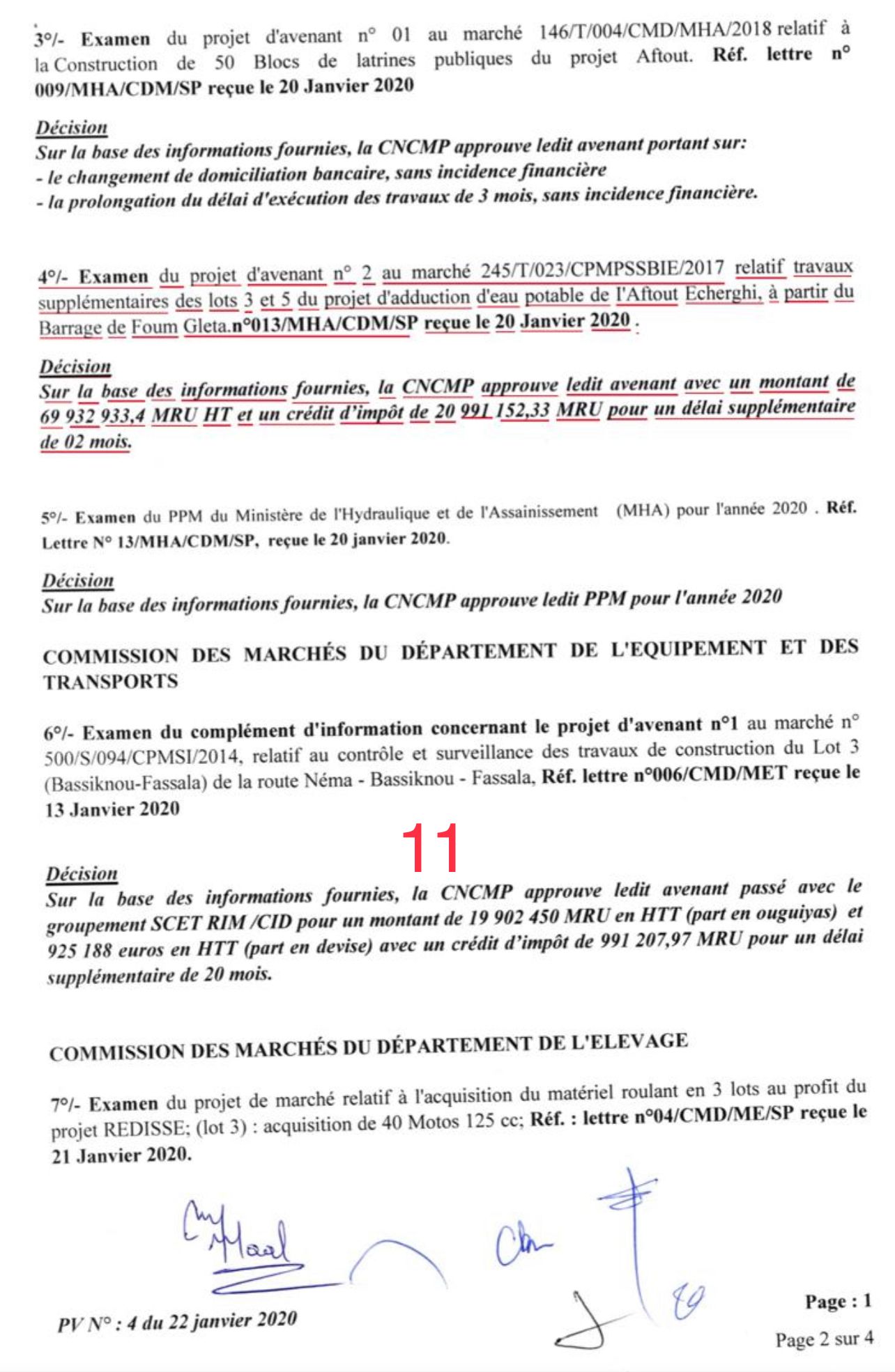 بالرغم من كل ما اطلعتم عليه من نقصان فج في أهم مكونات المشروع، فقد تم منح مبلغ إضافي للشركة المنفذة من خلال ملحق بقيمة: 699.329.334 أوقية قديمة مع إعفاء ضريبي بلغ (209.911.523 أوقية) (الوثيقة 11) ، فبل انتهاء الأشغال بأشهر، وتم تبرير العقد الجديد ب :