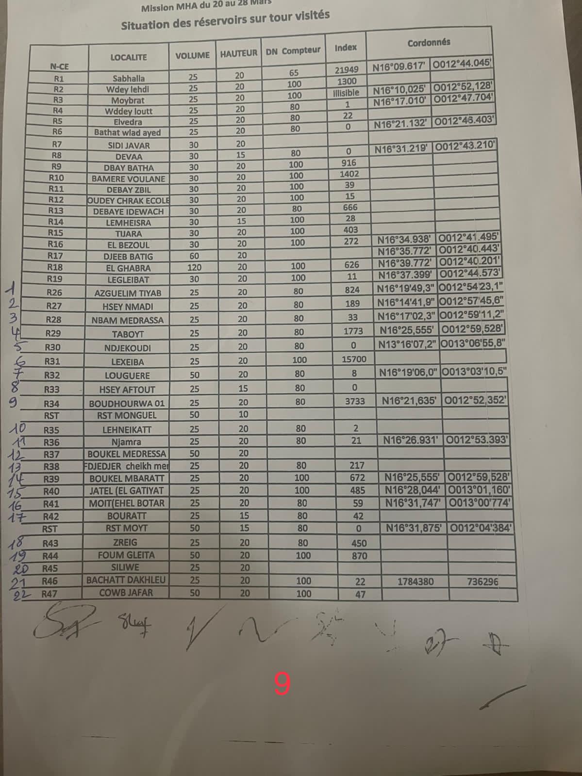 1. ممثل وزارة المياه السيد: أحمد زيدان ولد الطالب مختار، منسق مشروع آفطوط الشرقي، فهو من وقع عقد الملحق الإضافي وهو من ترأس لجنة الاستلام التي لم تذكر أي نقص في كميات مكونات الصفقة بالرغم من قيمتها الفائقة واكتفت ببعض الملاحظات الشكلية.