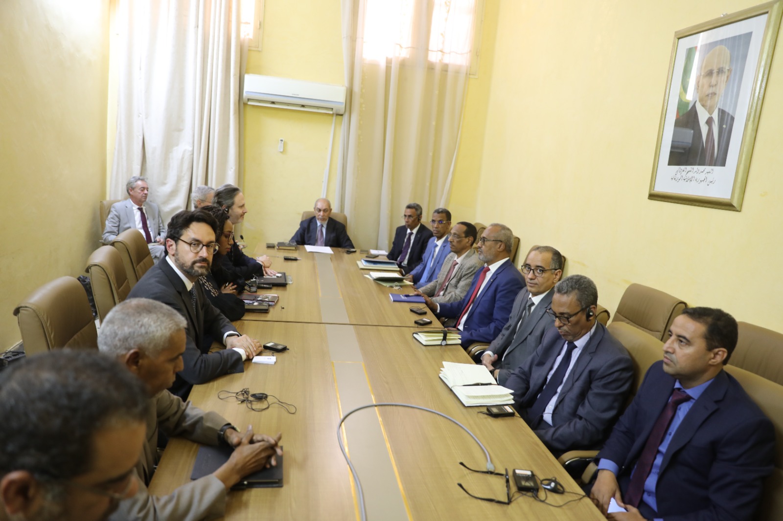 ترأس معالي وزير العدل السيد محمد محمود ولد الشيخ عبد الله بن بيه ظهر اليوم الإثنين 19-02-2024 بقاعة الاجتماعات في الوزارة لقاء مع وفد خبراء صندوق النقد الدولي الزائر لبلادنا حاليا، برئاسة السيد رون سنيبليسكي ، كبير المستشارين القانونيين بالصندوق..