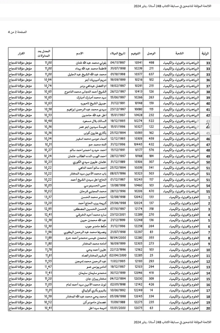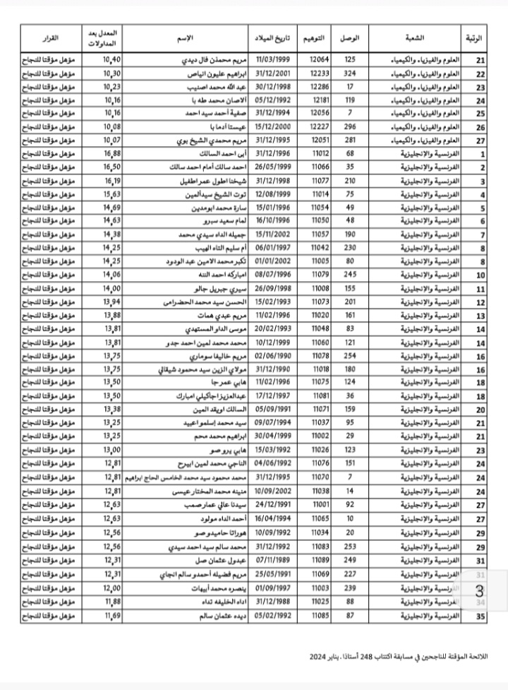 ودعت اللجنة الناجحين في المرحلة الأولى من المسابقة للحضور لدى مباني المدرسة العليا للتعليم بانواكشوط لإجراء المقابلة الشخصية خلال الفترة من الأربعاء 06 إلى غاية الجمعة 08 مارس 2024.