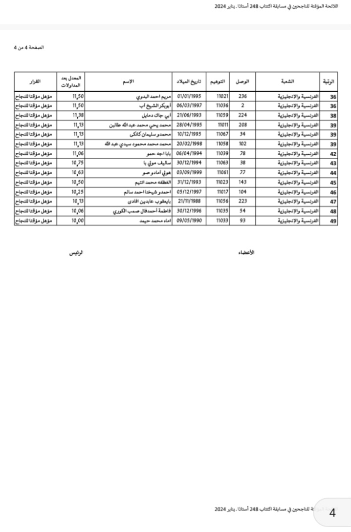 الإعلان عن نتائج مسابقة اكتتاب 248استاذ عربية