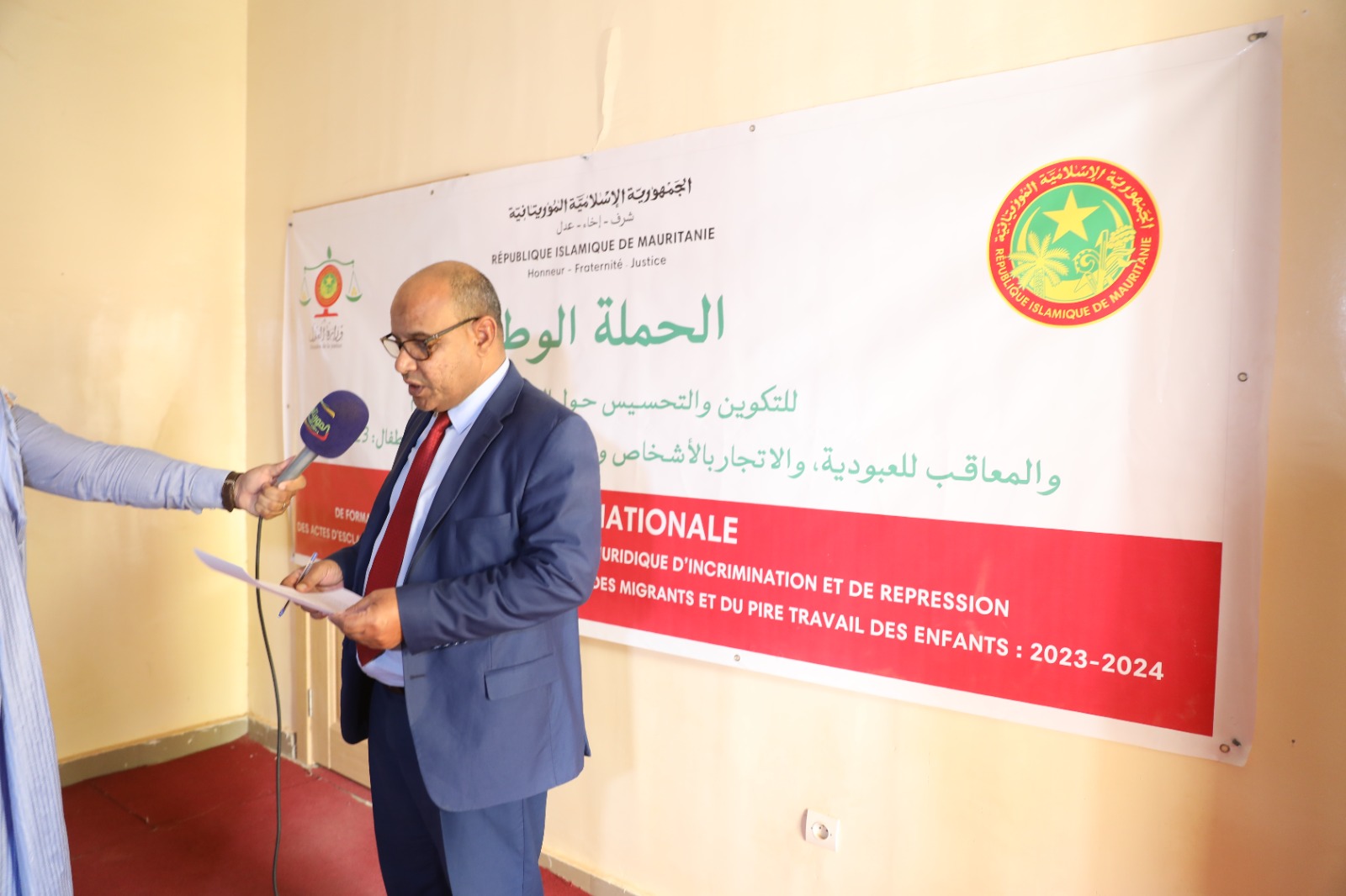 استأنفت بعثة وزارة العدل المكلفة بحملة التكوين والتحسيس حول القوانين المجرمة والمعاقبة للعبودية والاتجار بالأشخاص وتهريب المهاجرين وعمالة الأطفال المحرمة؛ اليوم الثلاثاء 05-03-2024 نشاطاتها من قصر العدل بمدينة أكجوجت، في بداية مرحلة تشمل ولايات: إينشيري وآدرار وتيرس الزمور.