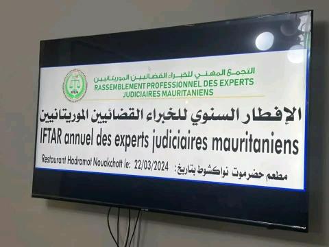 ظم التجمع المهني للخبراء القضائيين الموريتانيين إفطارهم السنوي للعام 2024، وحضر الإفطار الأمين العام لاتحاد عمال موريتانيا الوزير السابق الكوري ولد عبد المولى ونقيب الصحفيين الموريتانيين وأعضاء المكتب التنفيذي وعدد من الخبراء القضائيين الموريتانيين من ضمنهم العميد إبراهيم ولد الزبير والعميد إبراهيما سيديكى وكذلك العميد محمد ولد التومي.