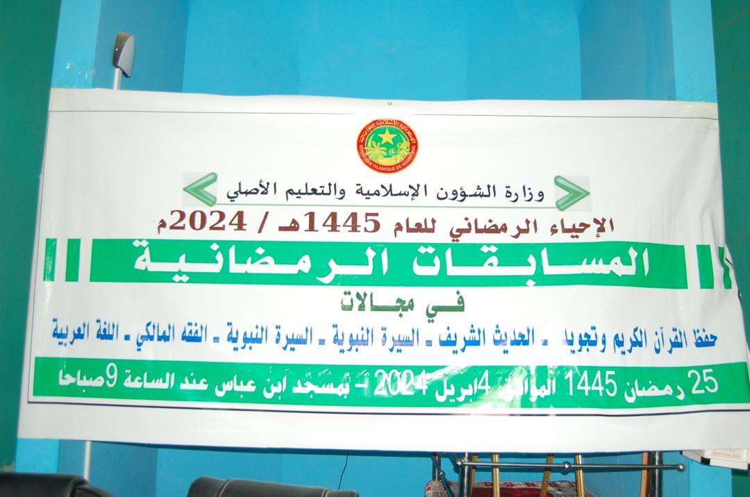 أشرف معالي الوزير السيد/ الداه ولد سيدي ولد أعمر طالب اليوم بجامع بن عباس ضمن الإحياء الرمضاني للعام 1445-2024م على انطلاق المسابقات الرمضانية في مجالات، حفظ القرآن الكريم وتجويده، والحديث النبوي الشريف، والسيرة النبوية، والفقه المالكي، واللغة العربية.