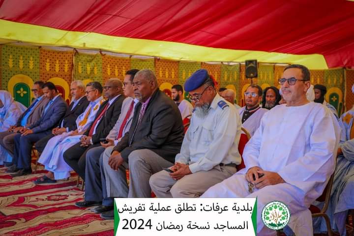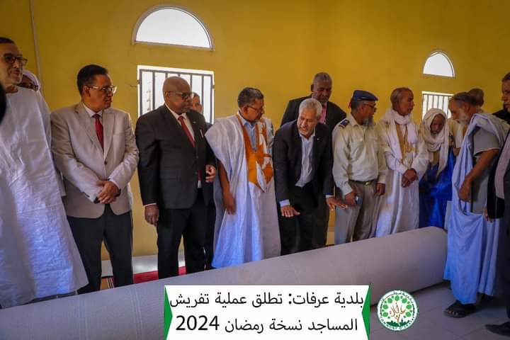 بحضور والي ولاية نواكشوط الجنوبية أشرف عمدة بلدية عرفات على انطلاق عملية تفريش عشرات المساجد في المقاطعة.