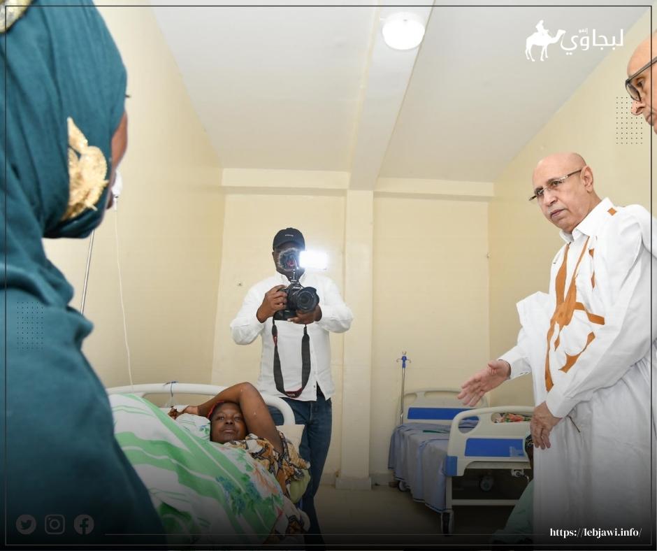 فخامة رئيس الجمهورية السيد محمد ولد الشيخ الغزواني، يؤدي مساء اليوم الأربعاء زيارة عفوية لكل من المستشفى الوطني، ومركز الأمراض العصبية وسط العاصمة انواكشوط، وذلك لغرض عيادة المرضى، ومؤازرتهم والاطمئنان على أوضاعهم في يوم عيد الفطر المبارك.