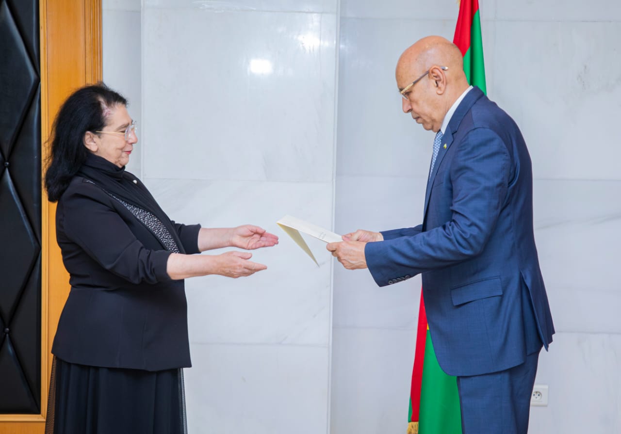 تسلم فخامة رئيس الجمهورية، الرئيس الدوري للاتحاد الإفريقي، السيد محمد ولد الشيخ الغزواني، اليوم الثلاثاء بالقصر الرئاسي في انواكشوط، أوراق اعتماد سعادة السيدة لورا بوتا، بوصفها سفيرة فوق العادة وكامل السلطة للجمهورية الإيطالية لدى الجمهورية الإسلامية الموريتانية.