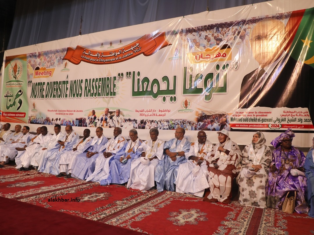 وقال ولد منصور إن حزبهم يرفع شعار: "على درب المواطنة والعدالة"، مردفا أن هذا الشعار هو الذي دفعهم لدعم ترشح ولد الغزواني لما لمسوه في مأموريته الأولى من اهتمام خاص بالجانب الاجتماعي للفئات المهمشة، ومن أجل أن يكمل ما بدأه في هذه المأمورية.