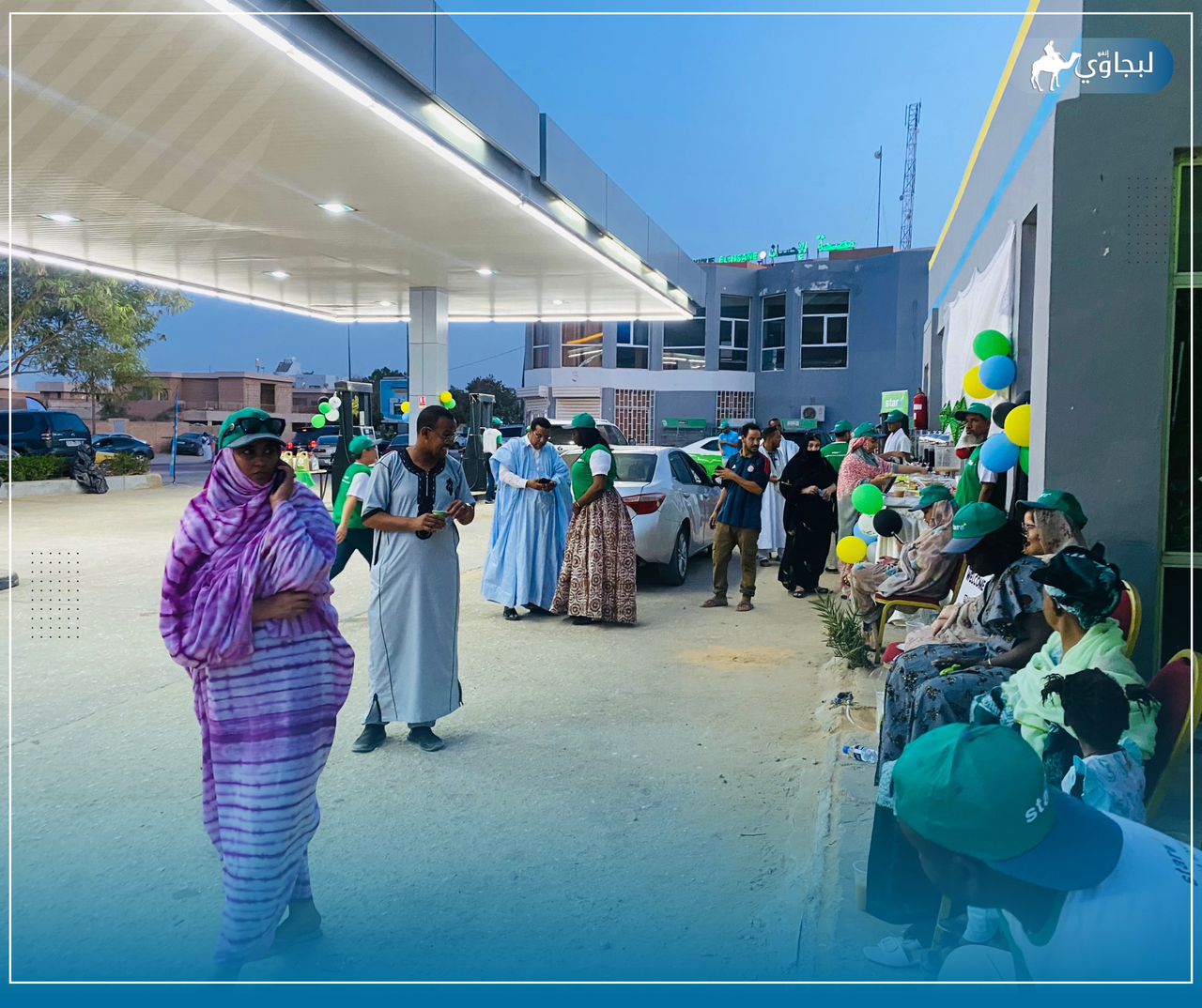 حيث تجمهر عدد كبير من عمال الشركة إلى جانب مديرها العام في نواكشوط أمام محطتها الكبيرة الموجودة عند ملتقى طرق موريصانتر وسط العاصمة، وقاموا بتقديم بعض الهدايا والمأكولات للزبناء أثناء تزويد سياراتهم بالبنزين من المحطة.
