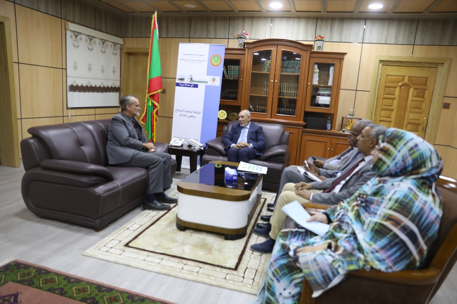 حضر اللقاء إلى جانب معالي الوزير كل من: الأمين العام للوزارة السيد: محمد أحمد عيدة، والمستشار الفني للوزير: السيد آبو مودي جالو، والمستشارة الفنية المكلفة بالاتصال السيدة: بنت أحميد بنت التكرور، ومدير الشؤون المدنية والختم: القاضي محمد أحمد مسكه.