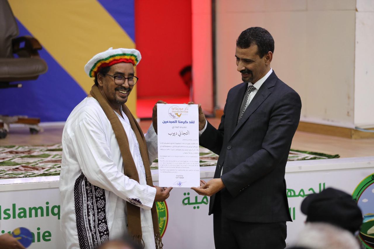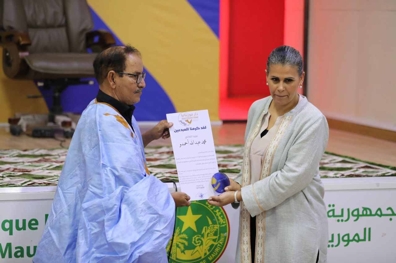 إن الوفاء والمسؤولية التاريخية تفرض علينا تكريم من أسهموا في لحظات مهمة من تاريخ بلادنا الفني والثقافي، واليوم نحتفى بثلاثة من خيرة مبدعينا الذين شكلوا اللبات الأولى للابداع في بلادنا، نترحم على روح المبدع التجاني أديوب، ونتمنى الصحة والتوفيق والتقدم لمبدعينا: محمد عبد الله احمدو، وعبد الودود الجيلاني، وندعوهم لمواصلة ابداعاتهم في مجالات تخصصهم.
