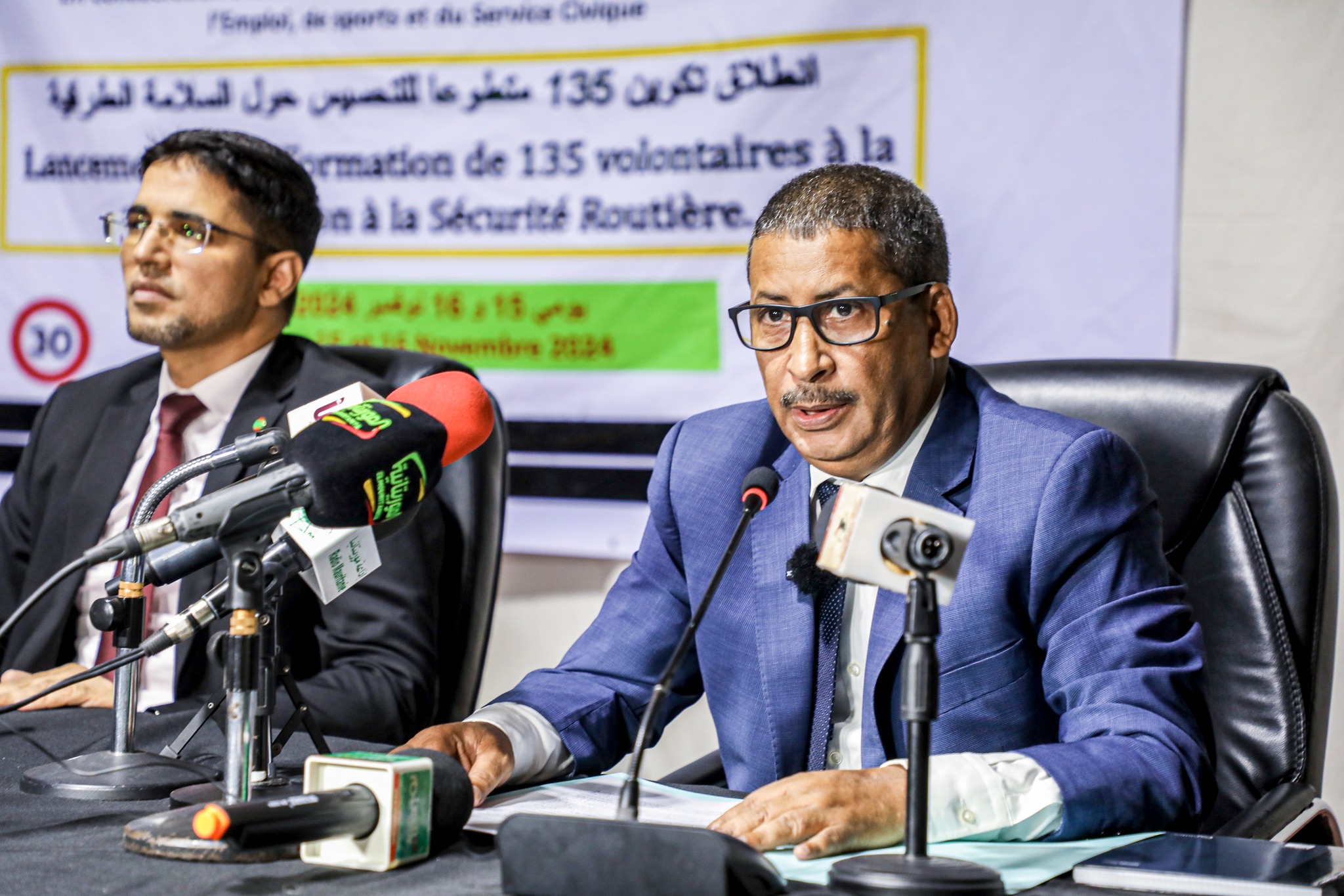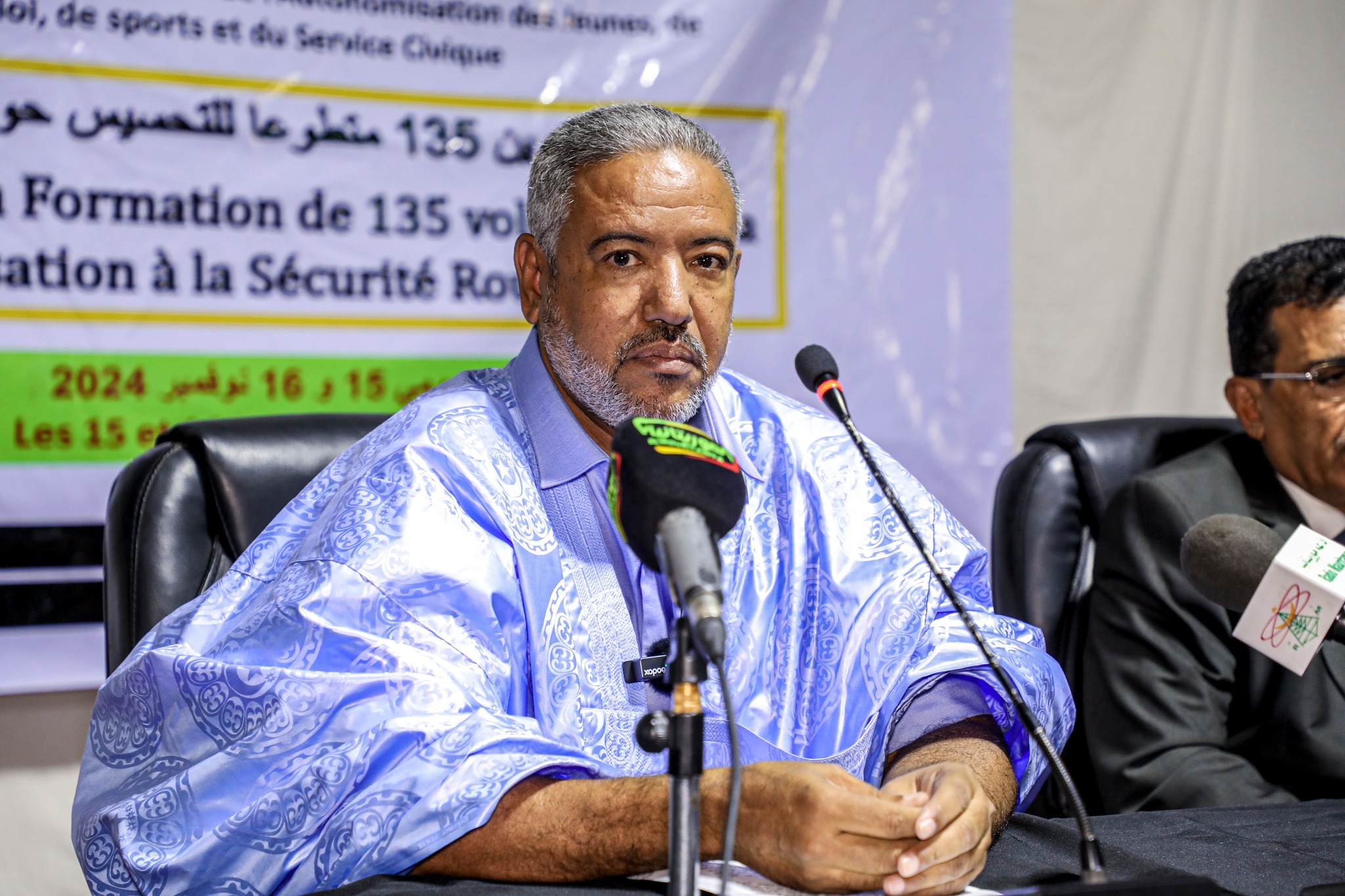 Le Ministre de l’Autonomisation des Jeunes, de l'Emploi, des Sports et du Service civique, M. Mohamed Abdallah Louly, a pris part, ce vendredi 15 novembre 2024, au lancement d’une formation destinée à 135 volontaires organisée par le Ministère de l'Equipement et des Transports, en présence de son homologue, M. Ely Ould El Veirik. Ces volontaires seront chargés de sensibiliser la population à la sécurité routière dans le cadre d’une initiative conjointe entre les deux ministères.