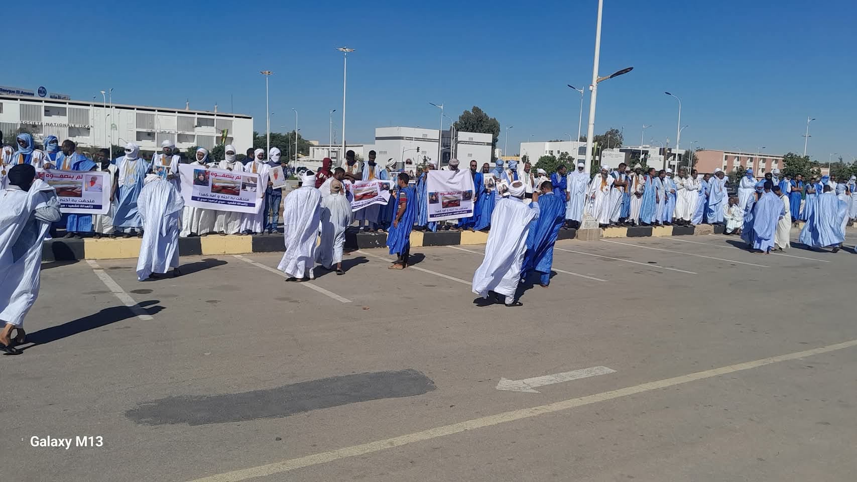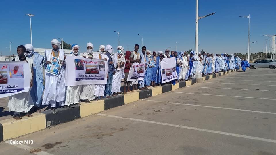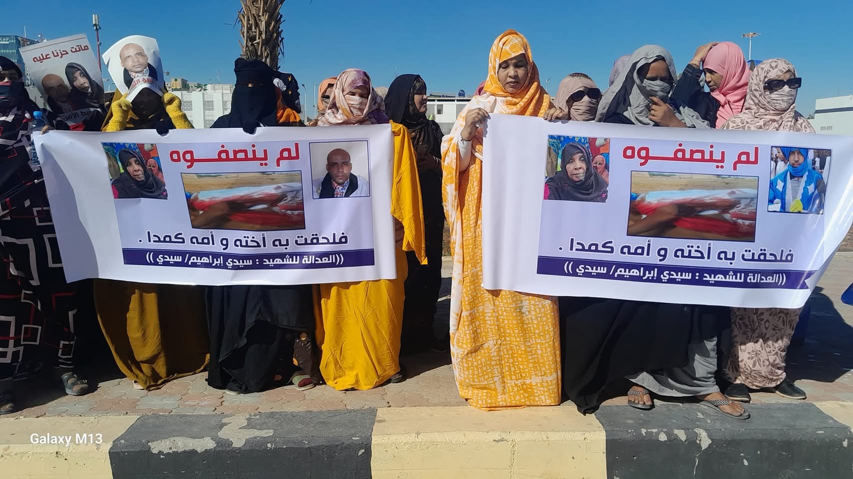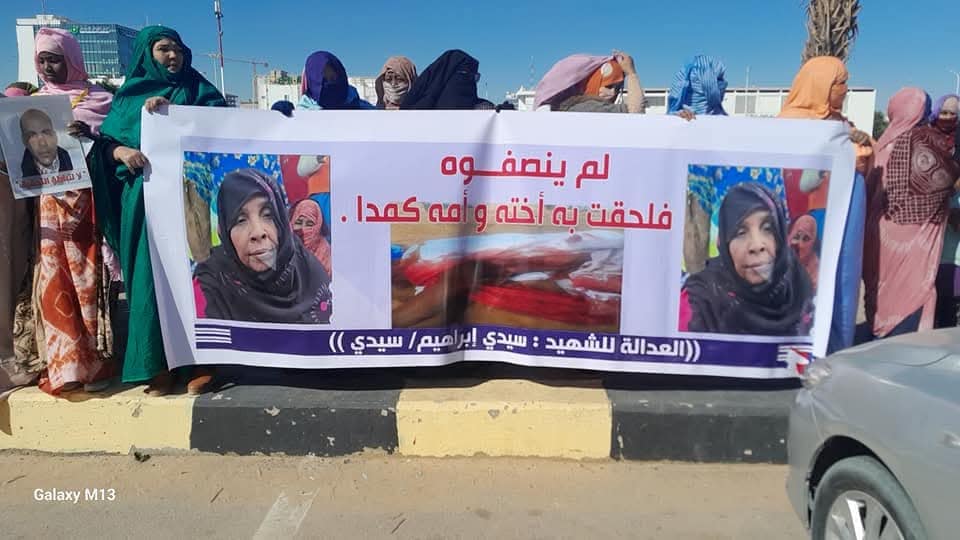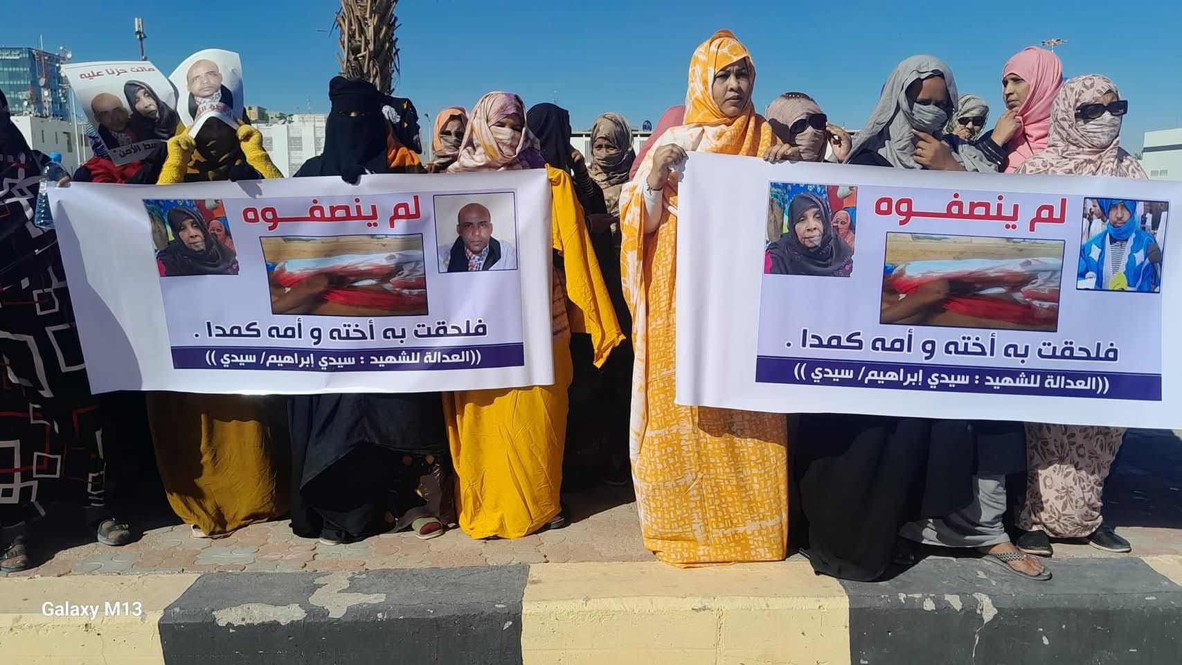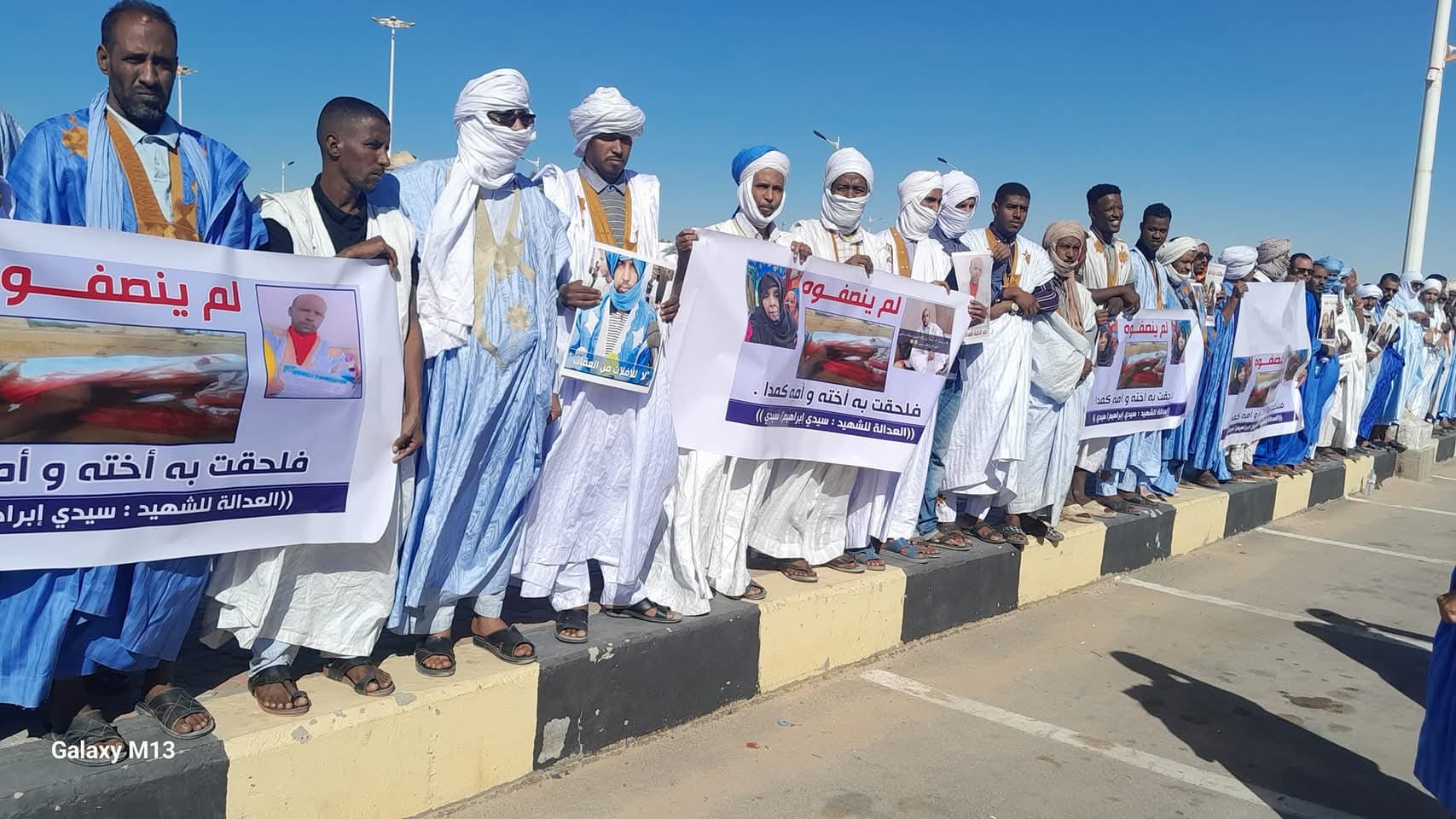 ورفع المتظاهرون لافتات من قبيل: العدالة للشهيد سيد إبراهيم ولد سيدي، وتدعو لإنصاف ذوي القتيل وتحقيق العدالة في الجناة.