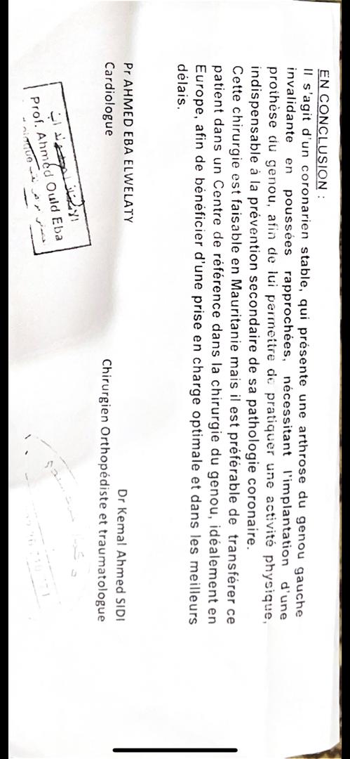 وأردف قائلا: "الطبيب قال إن العملية يمكن إجراؤها في موريتانيا، لكن من الأفضل إجراؤها في مركز مرجعي في أوروبا للتكفل الأمثل".