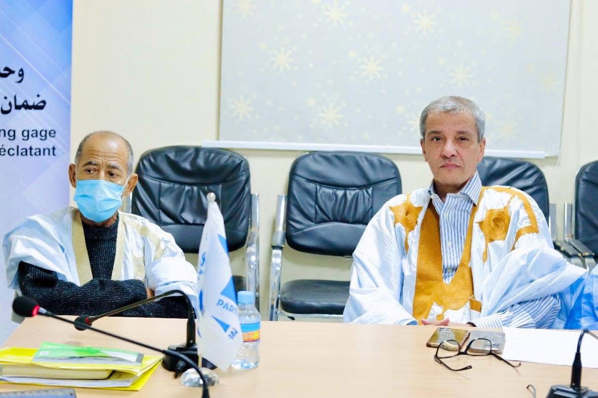 وقد تميز هذا الاجتماع بمشاركة رئيس الحزب السيد سيد أحمد ولد محمد عبر تقنية "الفيديو كونفرانص".