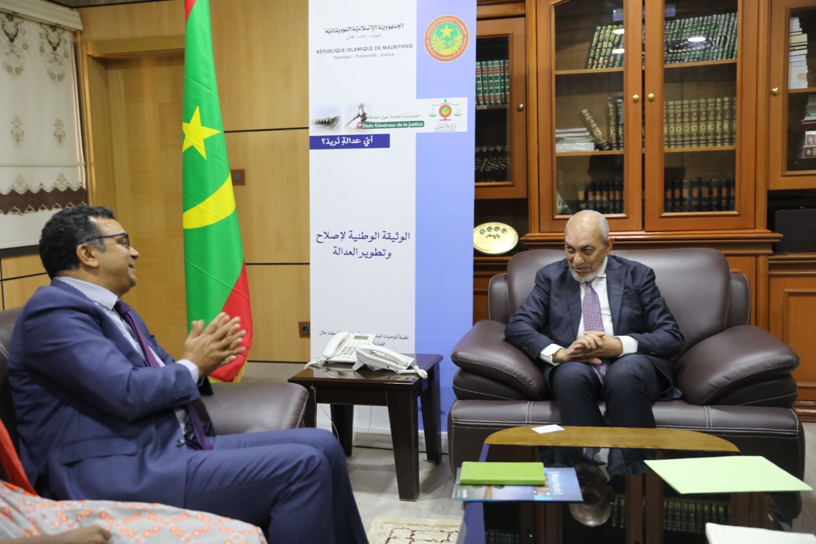 استقبل معالي وزير العدل السيد محمد محمود ولد الشيخ عبد الله بن بيَه في مكتبه ظهر اليوم الخميس 02-01-2025، السيد: الكبير العلوي المدغري، ممثل منظمة الأمم المتحدة للطفولة (اUNICEF) في بلادنا.