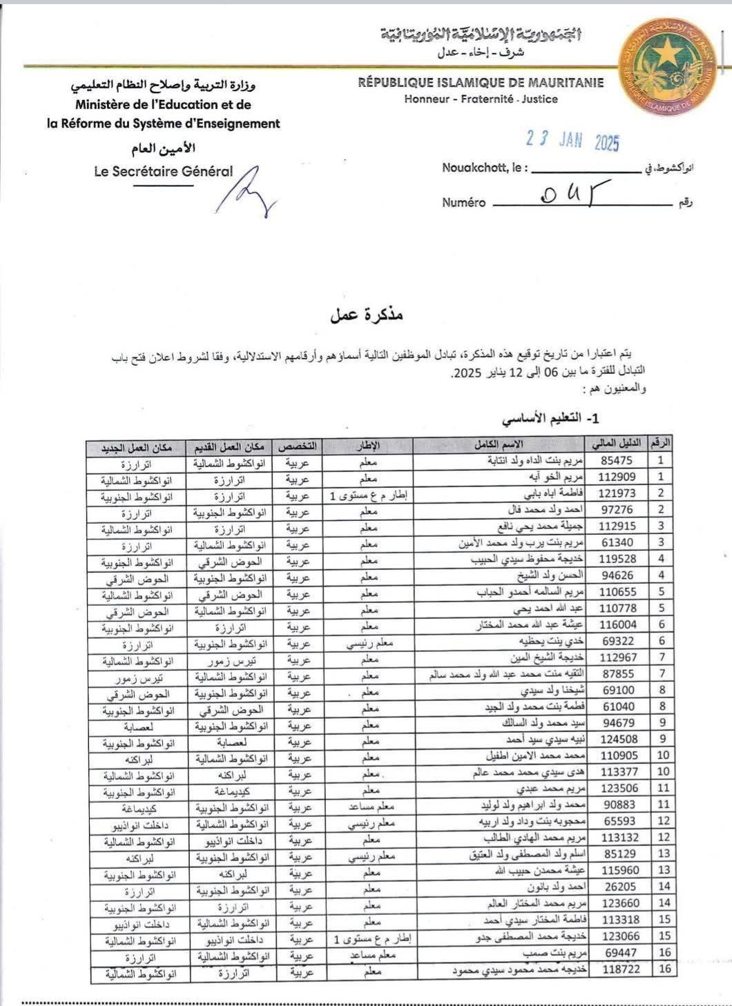 أعلنت وزارة التربية واصلاح النظام التعليمي عن لائحة التبادل بين المدرسين وفقا لإعلان فتح التبادل بين المدرسين خلال الفترة من 06 إلى 12 يناير الجاري.