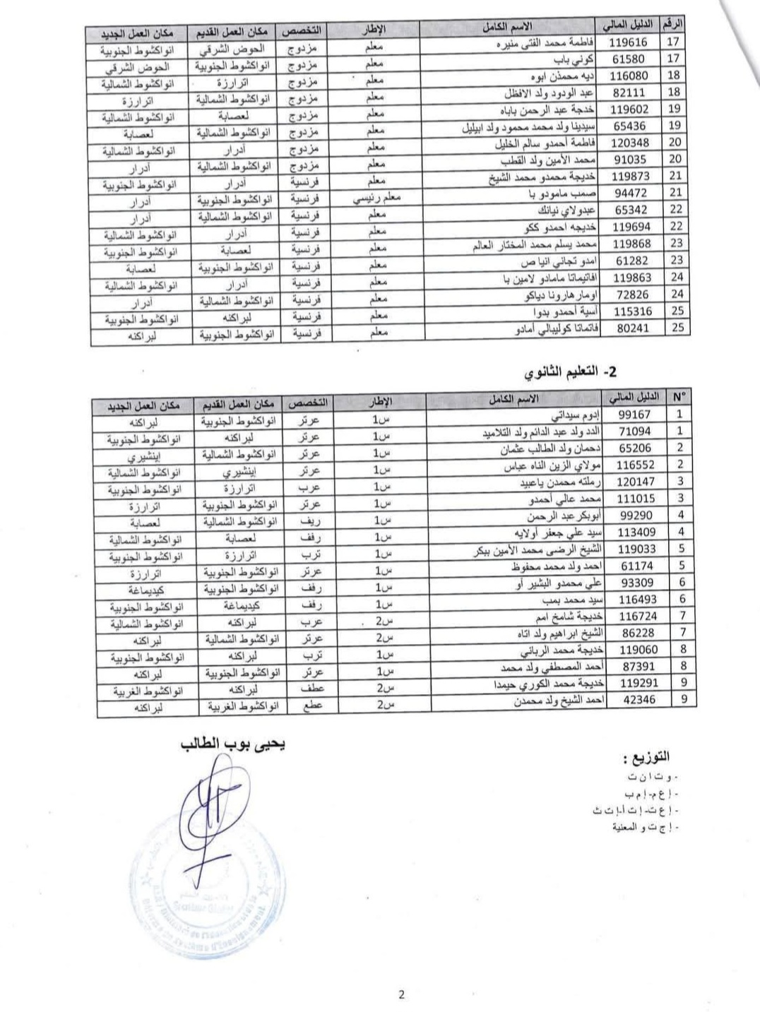 وشملت اللائحة 50 معلما و 18 استاذا، موزعين كالتالي :