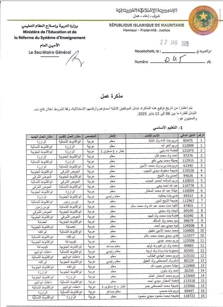 أعلنت وزارة التربية وإصلاح النظام التعليمي عن لائحة التبادل بين المدرسين وفقا لإعلان فتح باب التبادل بين المدرسين خلال الفترة من 06 إلى 12 يناير الجاري.