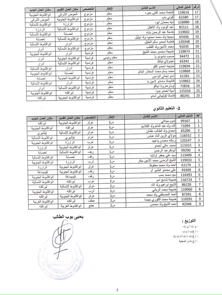 وشملت اللائحة 50 معلما و 18 أستاذا، موزعين كالتالي :