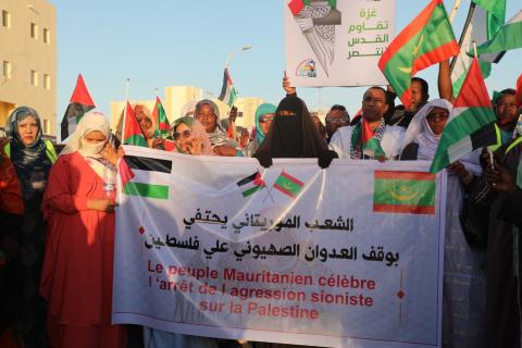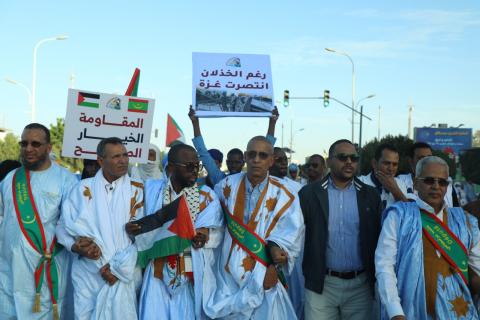 وانطلقت المسيرة من جامع ابن عباس وسط نواكشوط وانتهت أمام مكاتب ممثلية الأمم المتحدة بمشاركة رؤساء أحزاب سياسية وهيئات مجتمع مدني ومناصرون داعمون لفلسطين.