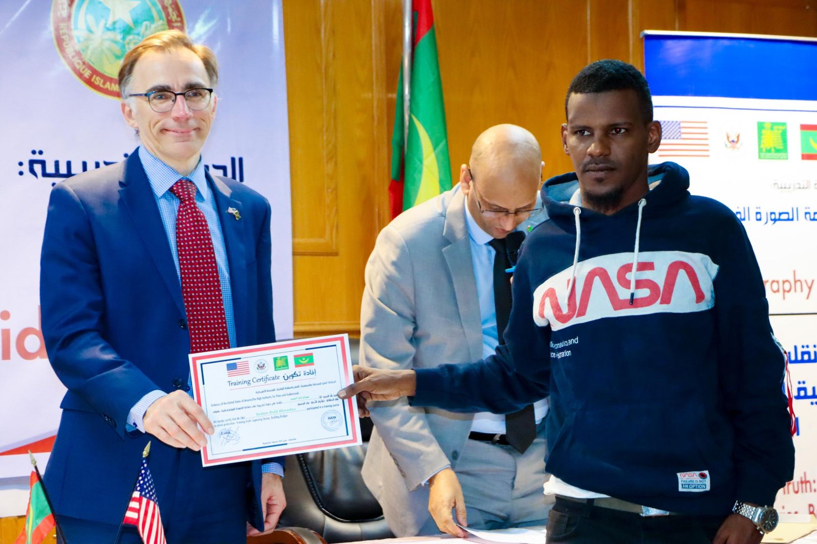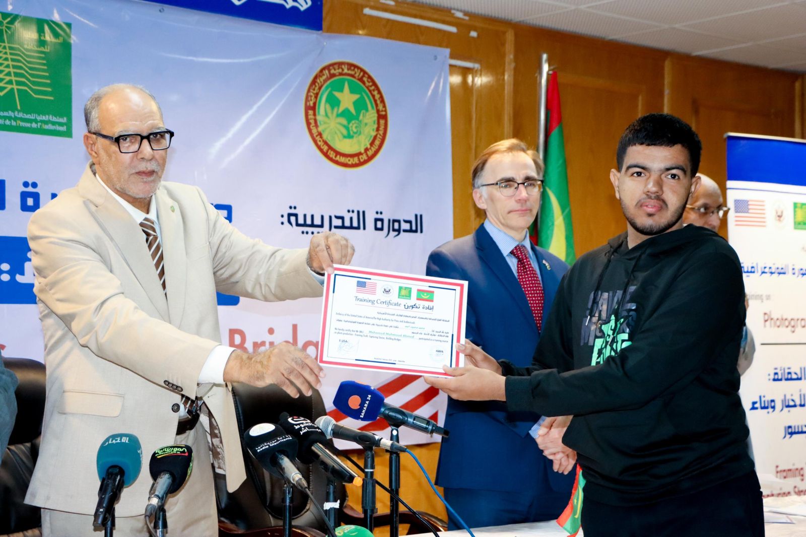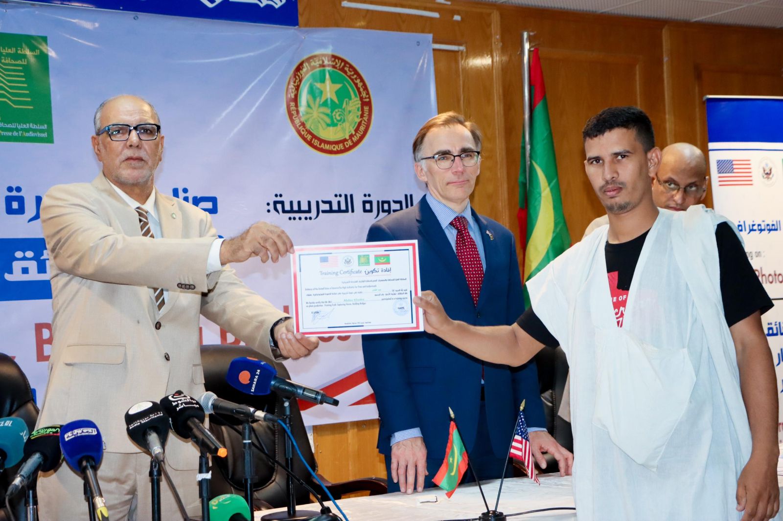 وقدم الأمين العام شكره لسفارة الولايات المتحدة الأمريكية في نواكشوط على دعمها لهذا التكوين، و تعزيزه بما يسهم في تحقيق الأهداف المشتركة في ترسيخ المهنية الإعلامية، وضمان جودة المحتوى، وتعزيز قدرات الصحفيين والمصورين.