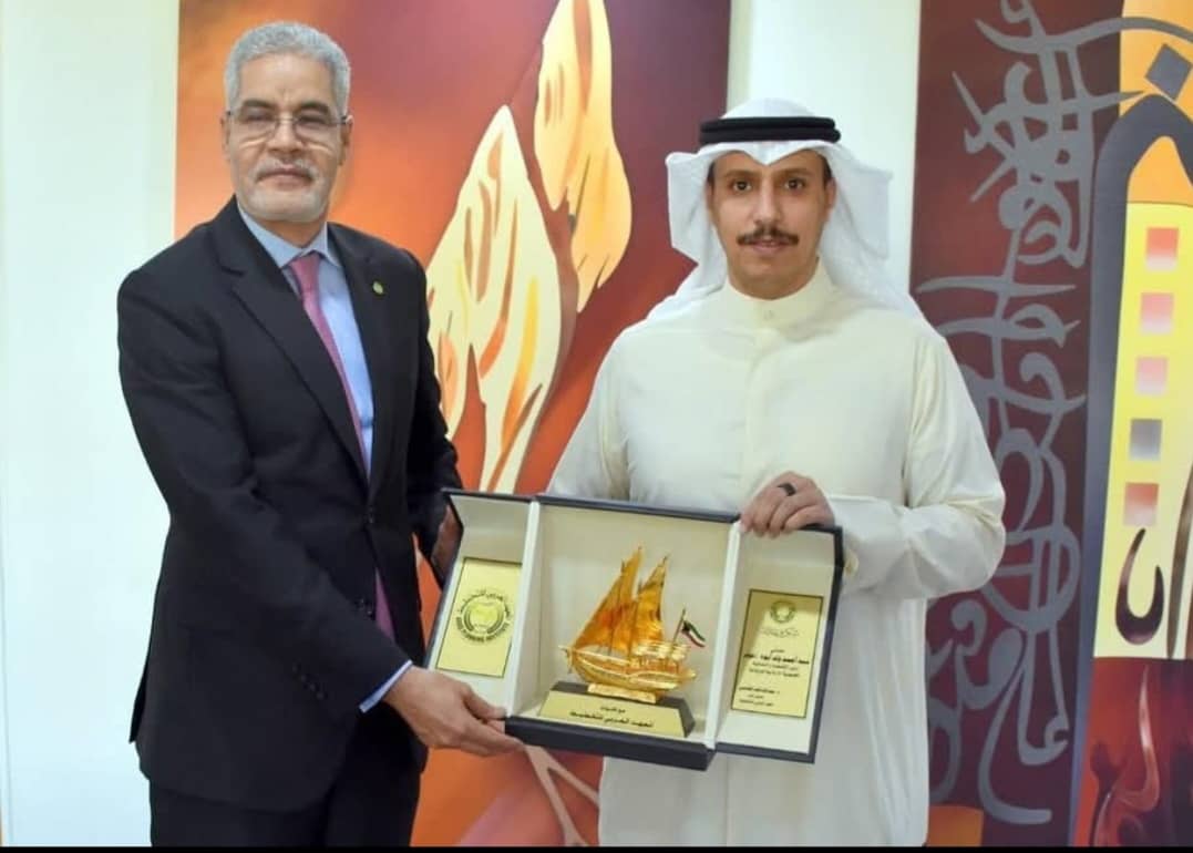 وخلال الزيارة قام المدير العام للمعهد الدكتور عبد الله فهد الشامي بتكريم معالي الوزير بمنحه درع المعهد، بحضور سعادة سفير بلادنا في الكويت محمد الأمين ولد الشيخ.