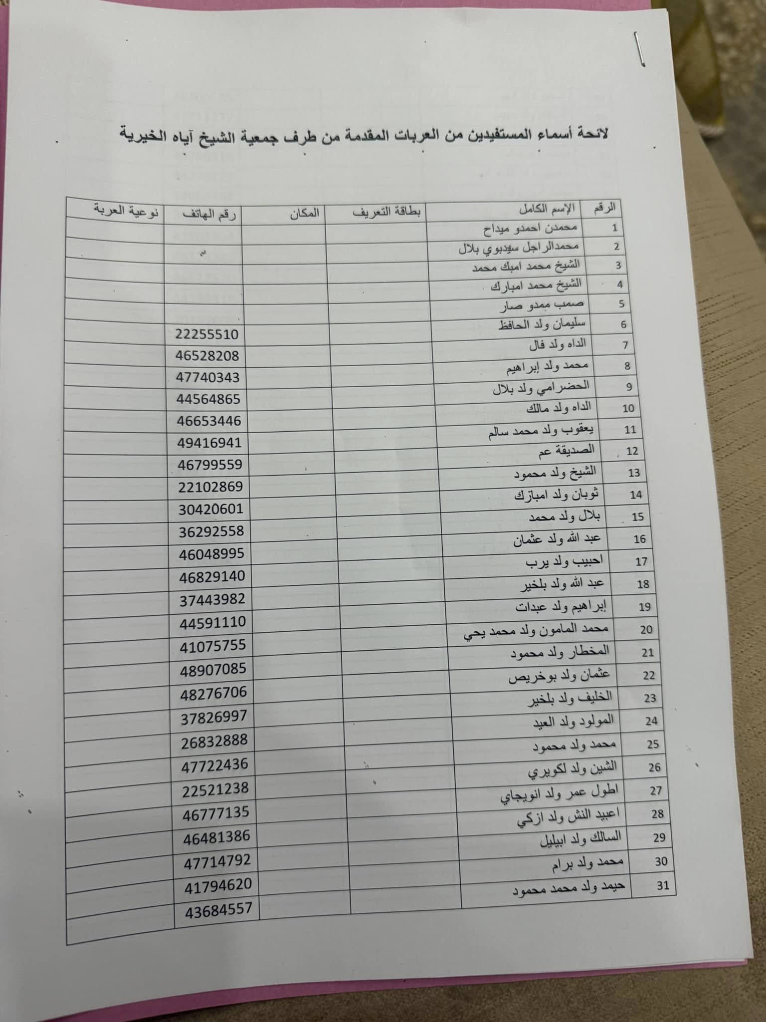 أعلنت جمعية الشيخ آياه الخيرية أسماء المستفيدين من العربات المقدمة من طرفها.