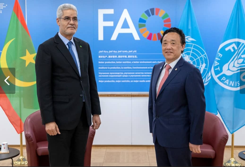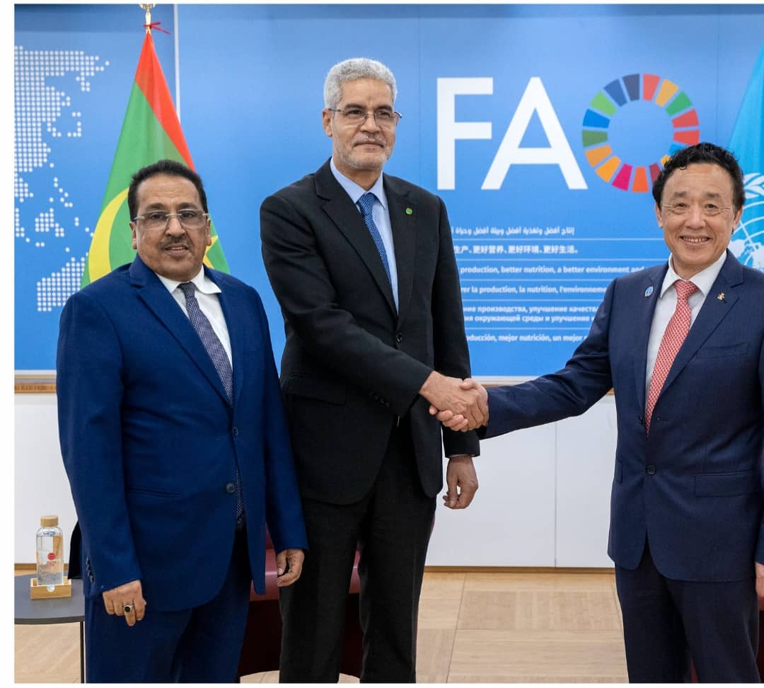 التقى معالي وزير الاقتصاد والمالية السيد/ سيد أحمد ولد ابُّوه اليوم في روما على هامش اجتماعات مجلس المحافظين للصندوق الدولي للتنمية الزراعية FIDA المنعقدة في روما - ايطاليا يومي 12-13 فبراير 2025 بالسيد شو دونيو، المدير العام لمنظمة الأغذية والزراعة للأمم المتحدة.
