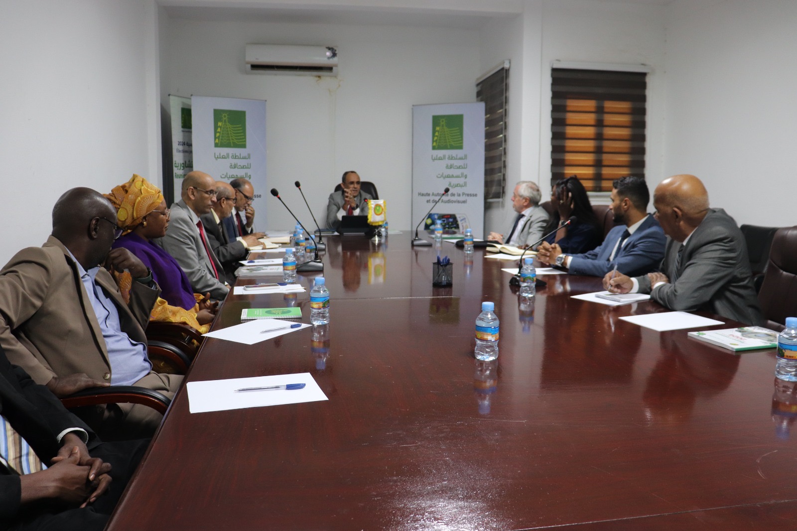 وفي مستهل اللقاء رحب رئيس السلطة العليا بالوفد الزائر، مؤكدا استعداده للتعاون مع هذه المؤسسة في سياق مهام السلطة العليا في ضبط وتطوير المشهد الإعلامي الوطني، مستعرضا حصيلة عمل الهيئة في إطار الشراكة والتعاون مع مندوبية الاتحاد الأوروبي في موريتانيا ، بغية العمل على ضمان تغطية مهنية وموضوعية ومتوازنة للانتخابات الرئاسية 2024 ، وقد شمل تكوين مائة صحفي على التغطيات المهنية للانتخابات ، ومواجهة الأخبار الزائفة وخطابات الكراهية ، ووضع ميثاق شرف للتغطيات الإعلامية ، مؤكدا أن دور الهابا متكامل مع مجموعة من السلط والمؤسسات التي تعمل على ترقية التجربة الديمقراطية في البلد خلال الفترات الانتخابية.