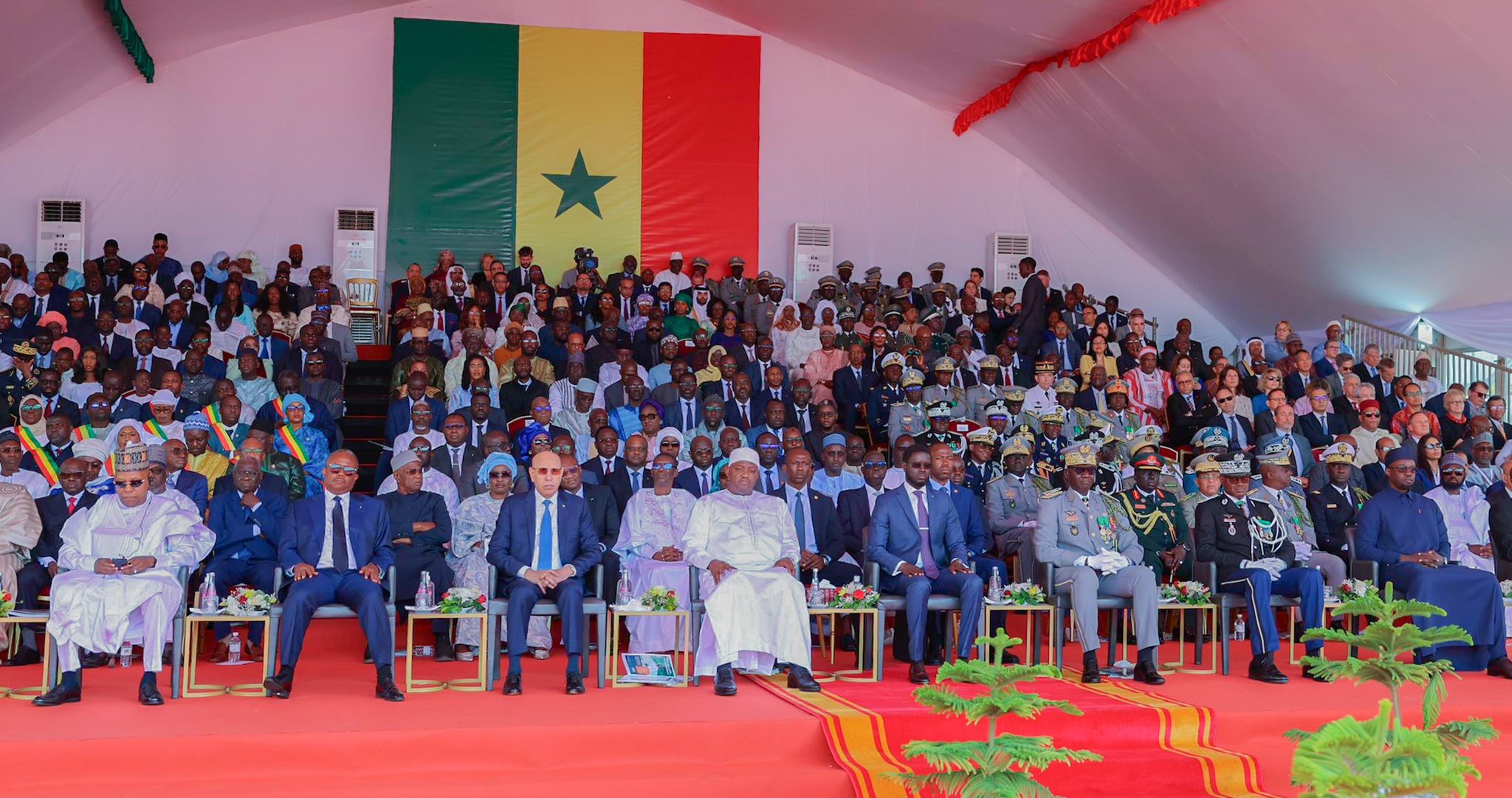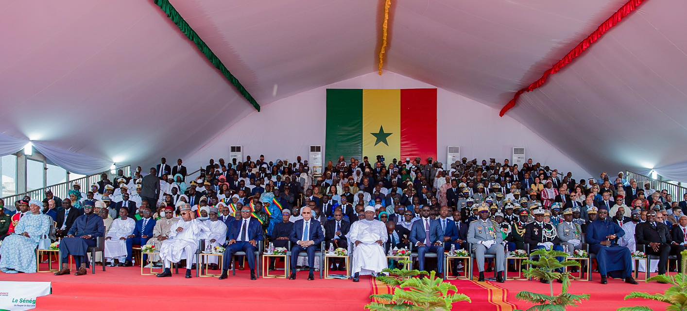 وتابع صاحب الفخامة رفقة عدد من زعماء الدول المدعوين، من ساحة الأمة وسط العاصمة دكار، مراسم رفع العلم، وتوشيح عدد من الشخصيات، إلى جانب عرض عسكري ومدني يضم تشكيلات من القوات المسلحة وقوات الأمن، بالإضافة إلى استعراض جوي.