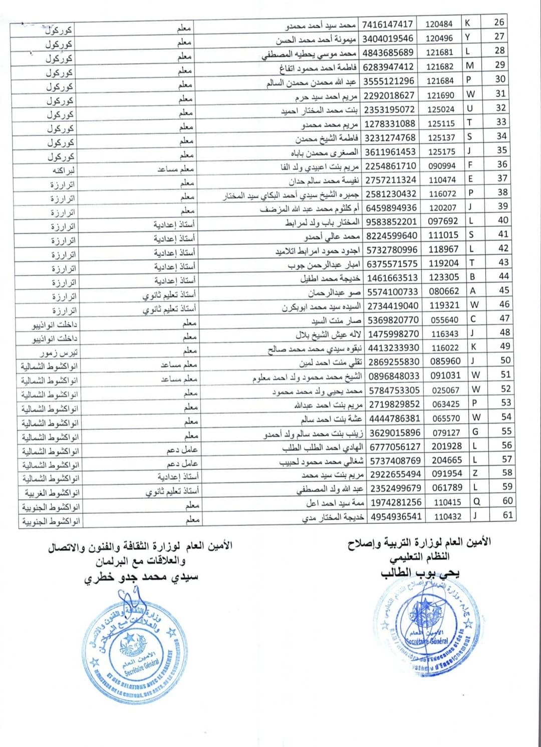 وشملت اللائحة أساتذة ومعلمين وأطرا عقدويين وعمال دعم.