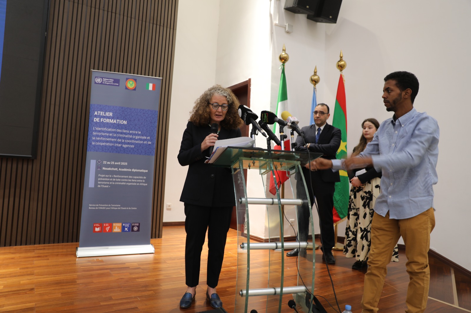 وقد حضر افتتاح الورشة ممثل عن وزارة الدفاع، وسفيرة إيطاليا في نواكشوط، والمنسقة المقيمة للأمم المتحدة، ومديرة مكتب الأمم المتحدة المعني بمكافحة المخدرات والجريمة في موريتانيا.