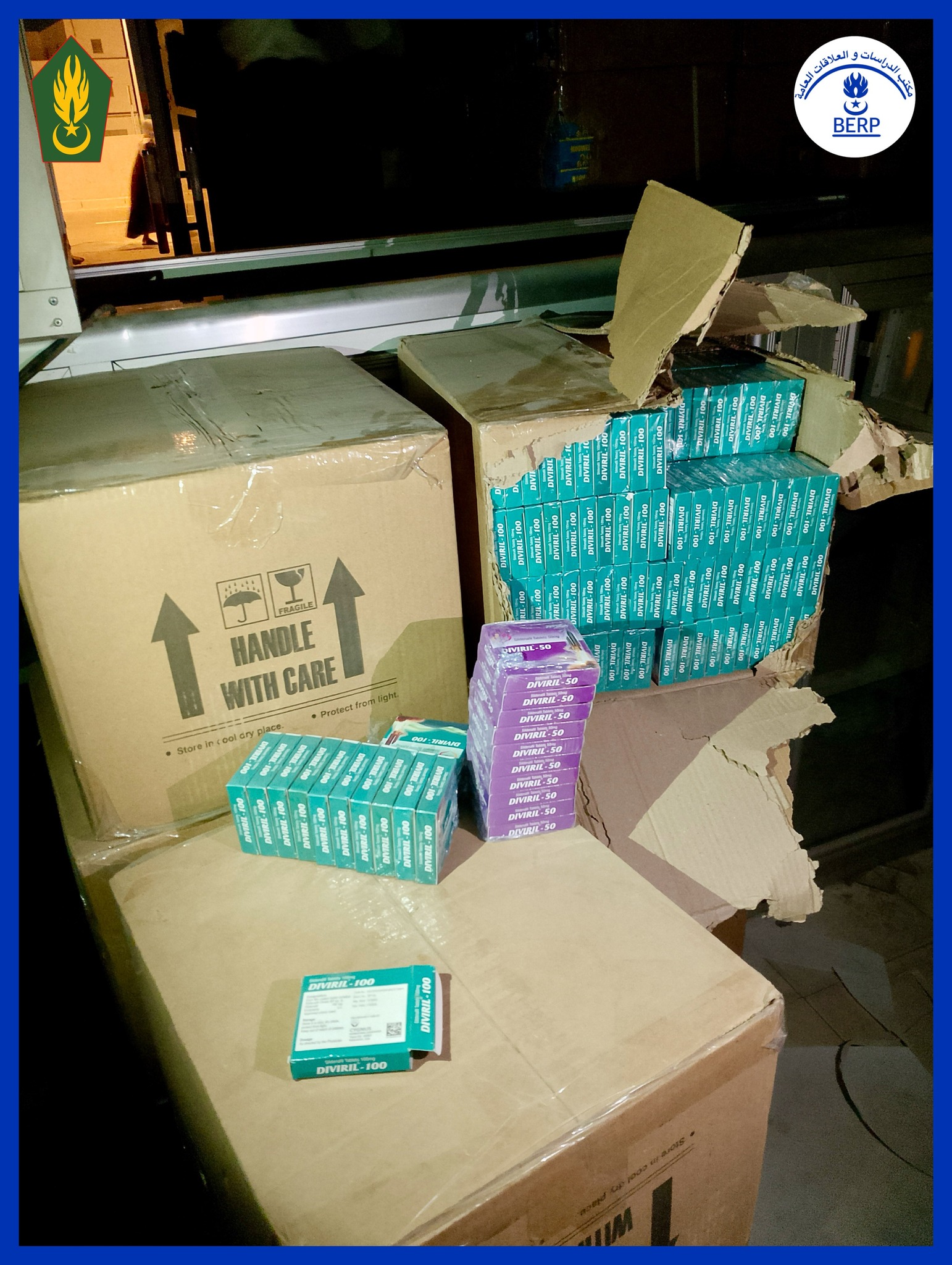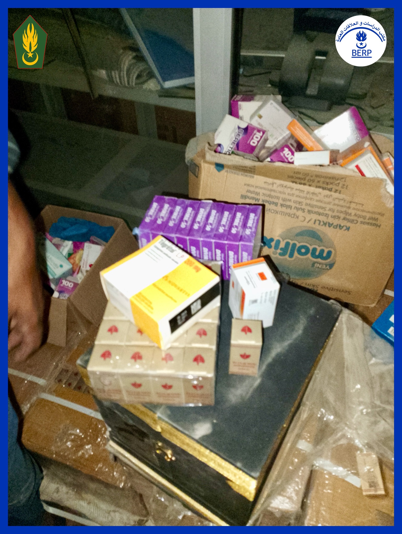 وجاء في بيان له إن اكتشفا المخزن المذكور جاء نتيجة لمواصلة التحقيق و"تعميقا للبحث حول شبكات تهريب الادوية المزورة والحبوب المهلوسة".