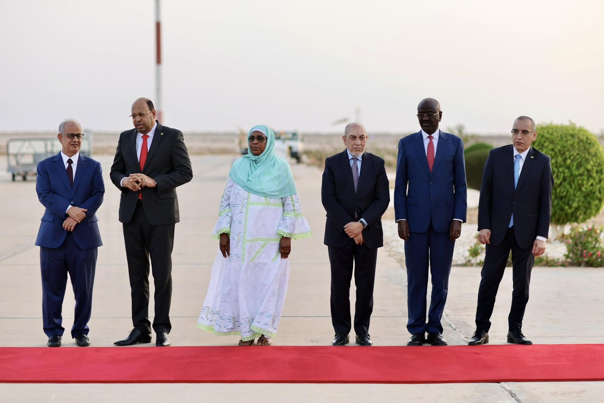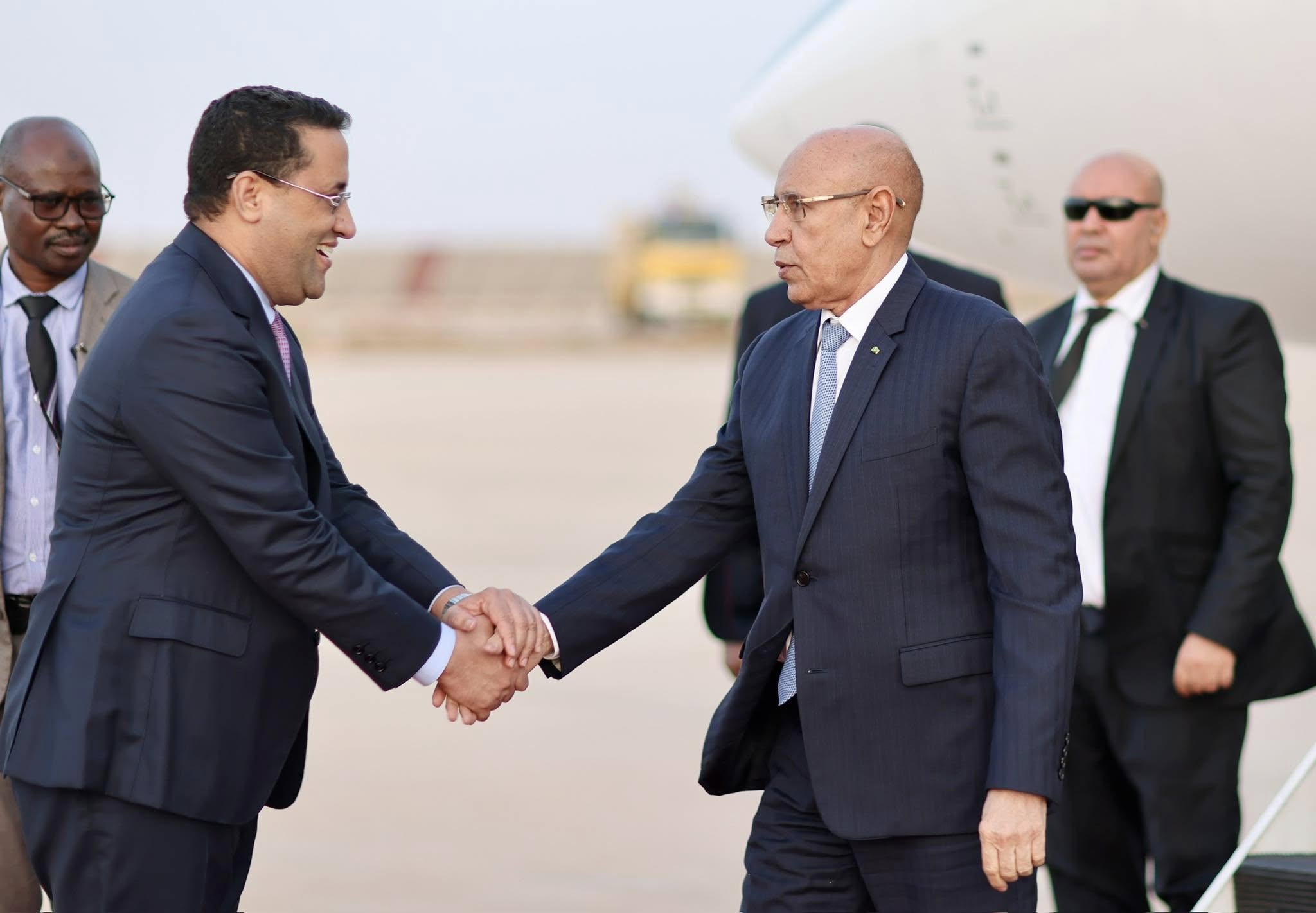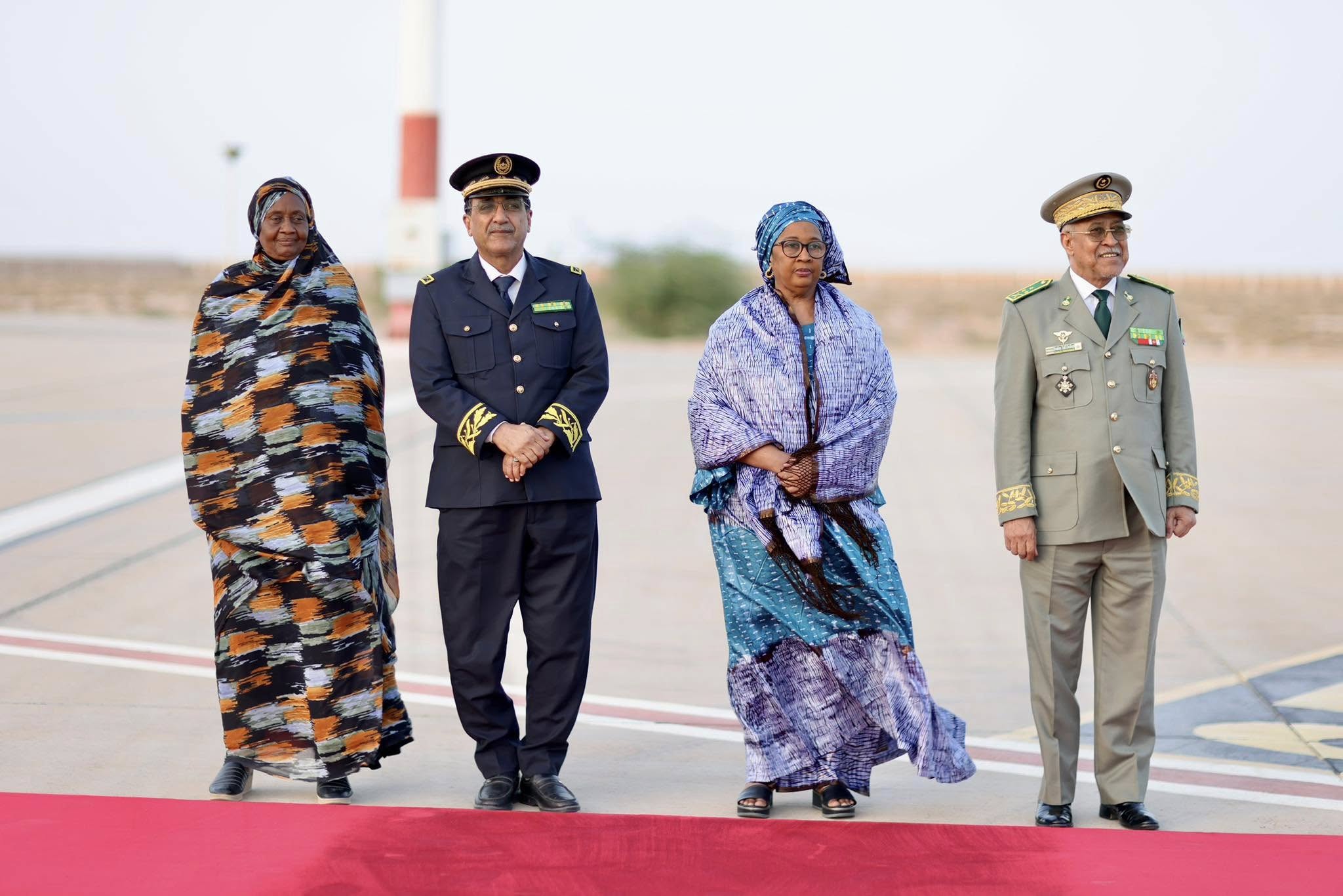 واستقبل رئيس الجمهورية عند سلم الطائرة بمطار نواكشوط الدولي ام التونسي من طرف الوزير الأول المختار ولد أجاي، والوزير الأمين العام لرئاسة الجمهورية مولاي ولد محمد لغظف، والوزيرين المستشارين برئاسة الجمهورية محمد ولد عبد الله ولد عثمان، وعيشاتا با يحيى، ووزير العدل السيد محمد محمود ولد الشيخ عبدالله بن بيه، ووزير الشؤون الخارجية والتعاون الإفريقي والموريتانيين في الخارج السيد محمد سالم ولد مرزوك، ووزير الداخلية وترقية اللامركزية والتنمية المحلية السيد محمد احمد ولد محمد الأمين، وقائد الأركان الخاصة لرئيس الجمهورية الفريق ابراهيم فال الشيباني الشيخ أحمد، والمديرة المساعدة لديوان رئيس الجمهورية غانديغا فاتيماتا، ووالي نواكشوط الغربية امربيه ربو ولد بونن ولد عابدين، ونائبة رئيسة جهة نواكشوط هاو سيدي بي .