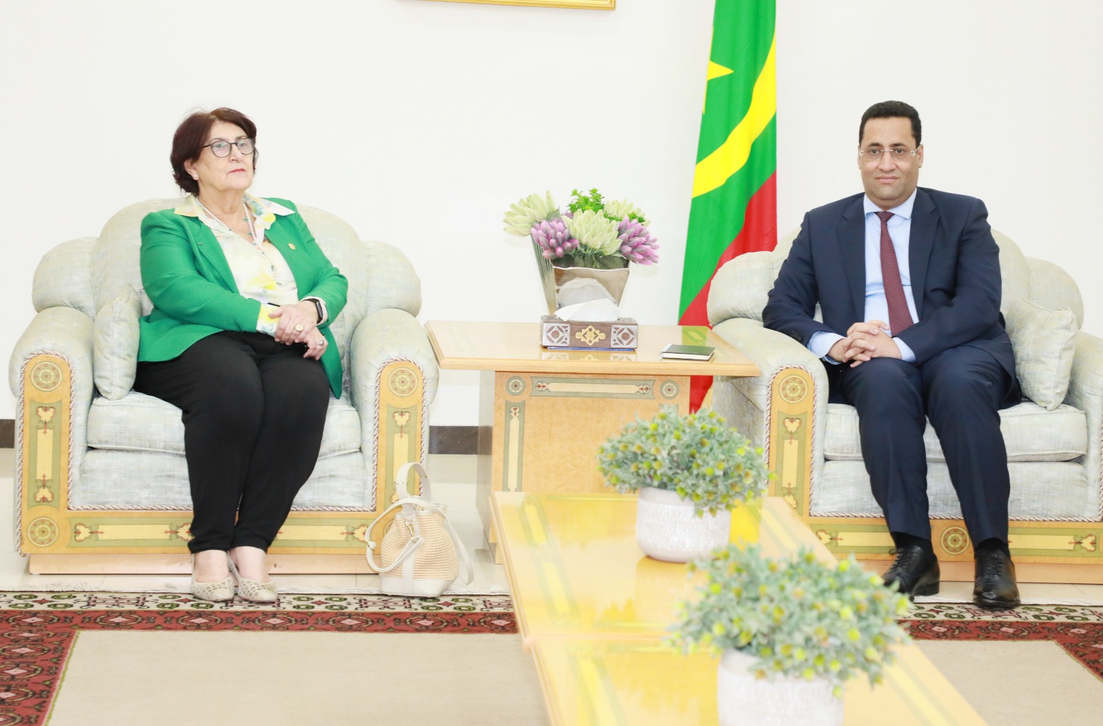 وجرى اللقاء بحضور معالي وزيرة العمل الاجتماعي والطفولة والأسرة السيدة صفية انتهاه، ومعالي مدير ديوان الوزير الأول السيد الشيخ ولد زيدان، ومستشارة الوزير الأول السيدة هند بنت عينينا.