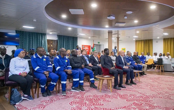 وجرى حفل التدشين من على متن المنصة العائمة لتسييل الغاز الطبيعي (FLNG) بعرض البحر، بحضور رئيس الجمهورية محمد ولد الشيخ الغزواني، ونظيره السنغالي الرئيس باسيرو دومان فاي، إلى جانب كبار المسؤولين في شركتي "بريتيش بتروليوم" (BP) و"كوسموس إنيرجي"، من ضمنهم الرئيس التنفيذي لـBP ميراي أو شيكلوس.