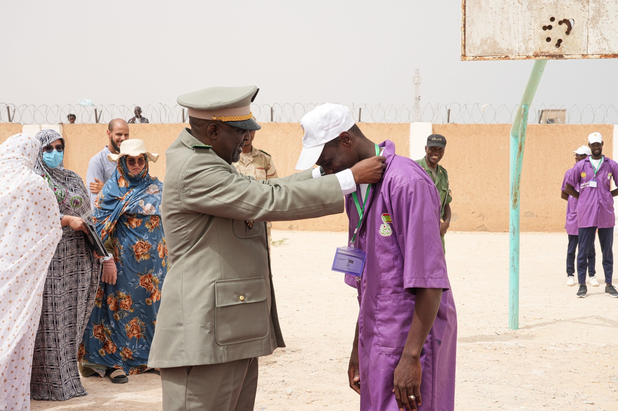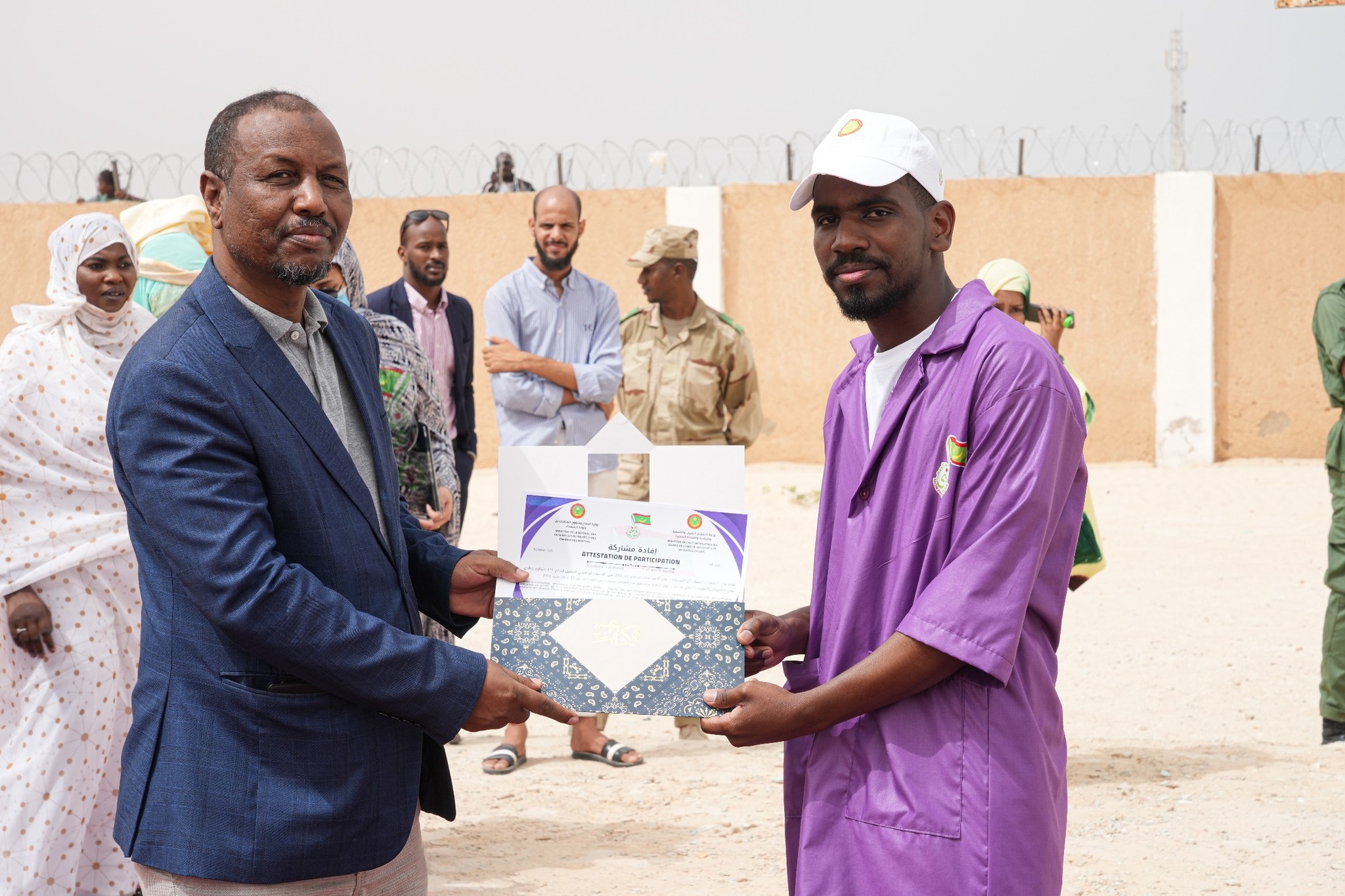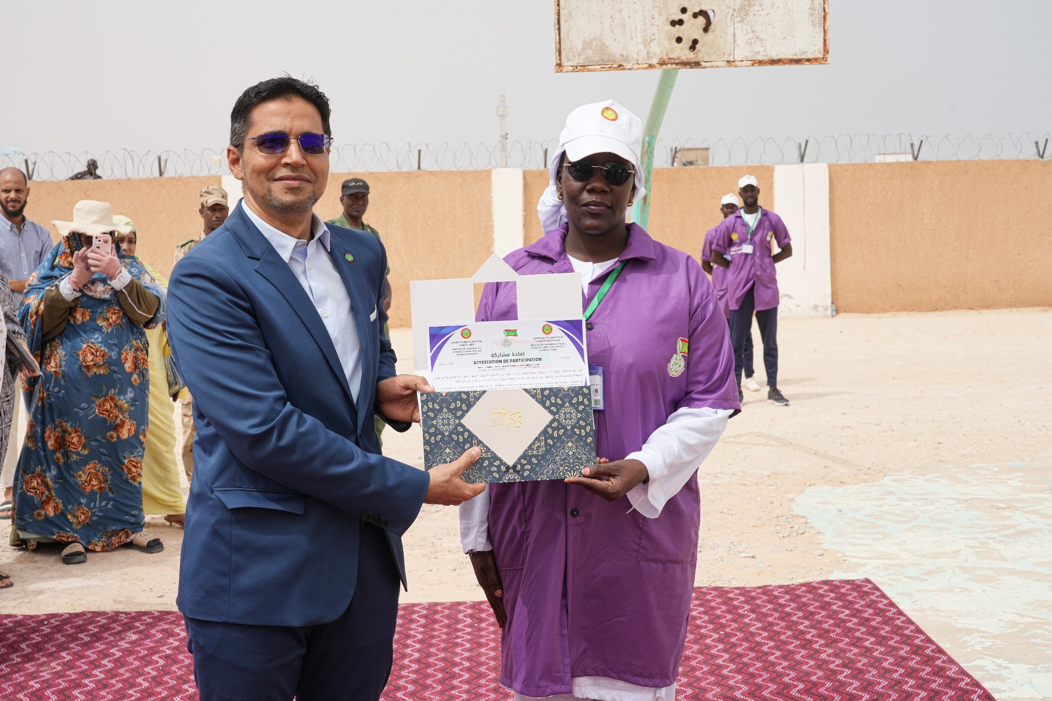 أشرف معالي وزير تمكين الشباب والتشغيل والرياضة والخدمة المدنية، السيد محمد عبدالله لولي، اليوم الأحد الموافق 25 مايو 2025، بدار الشباب الترحيل بمقاطعة توجنين بولاية انواكشوط الشمالية،على اختتام فعاليات الأسبوع التكويني المغلق، المنظم بالتعاون مع وزارة الدفاع وشؤون المتقاعدين وأولاد الشهداء، لصالح 111 متطوعا وطنيا. تلقون خلال أسبوع دروس عن تأسيس الدولة وترسيخ ثقافة حب الوطن والانتماء والتضحية من أجله، والانضباط والمثابرة والاجتهاد، والإسعافات الأولية،