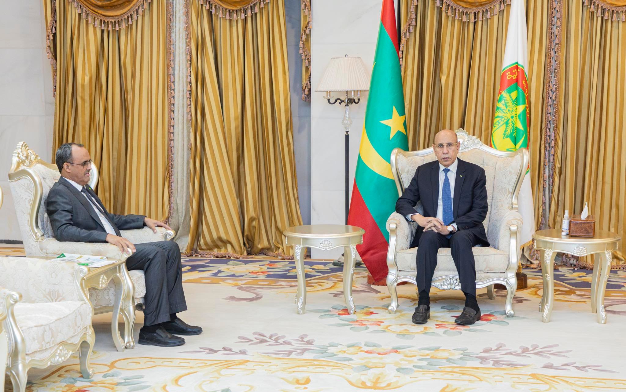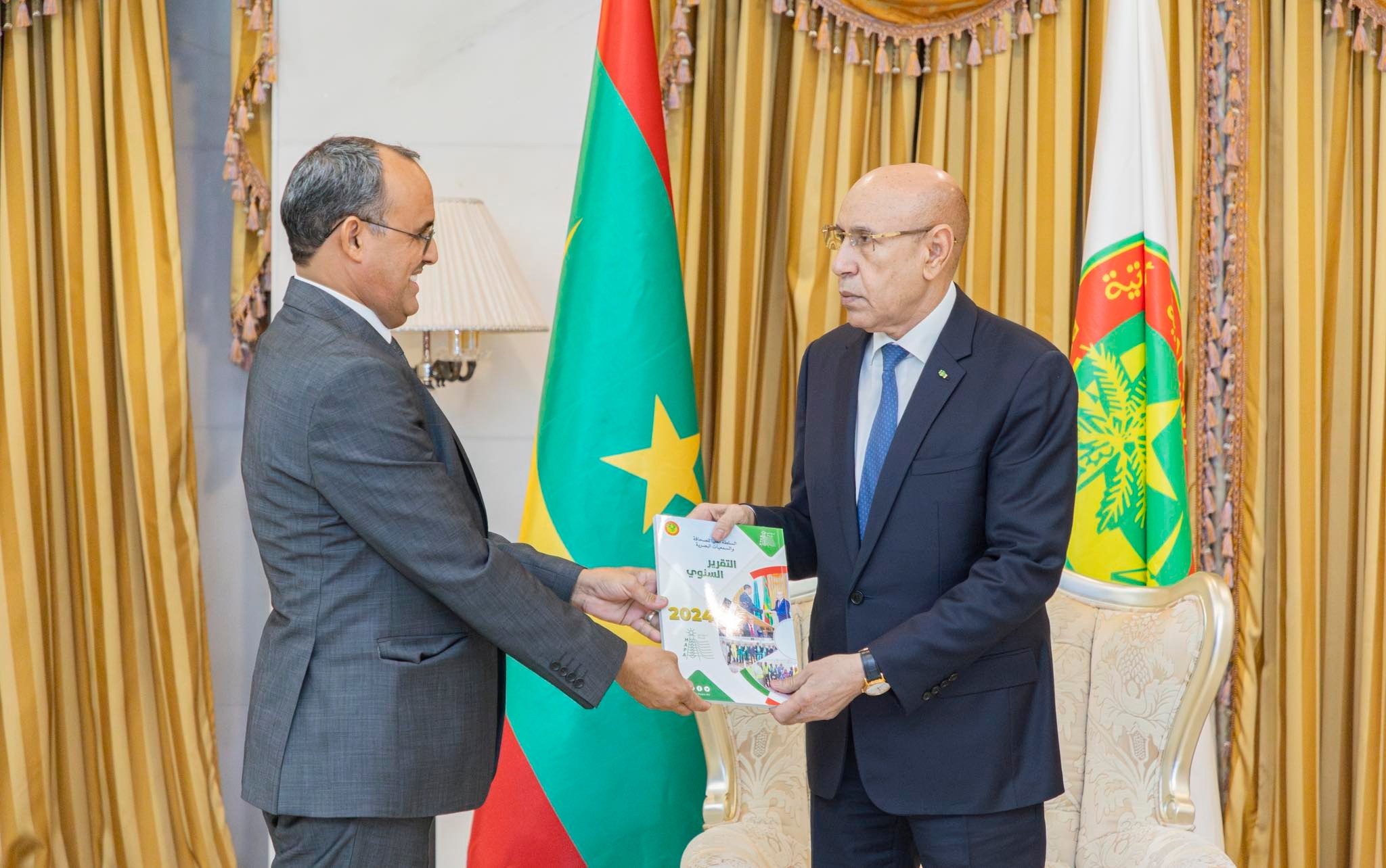 تسلم فخامة رئيس الجمهورية، السيد محمد ولد الشيخ الغزواني، اليوم الأربعاء بالقصر الرئاسي في نواكشوط، التقرير السنوي للسلطة العليا للصحافة والسمعيات البصرية، خلال استقبال خص به فخامة رئيس الجمهورية، اليوم رئيس السلطة العليا للصحافة والسمعيات البصرية، السيد محمد عبد الله ولد لحبيب.