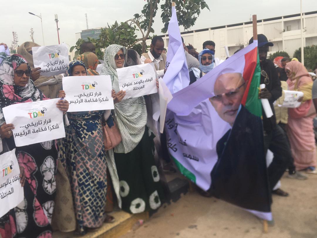 نظم عدد من المتعاونين مع مؤسسات الإعلام الرسمي، اليوم الجمعة، وقفة في ساحة الحرية بالعاصمة نواكشوط، عبّروا خلالها عن شكرهم وامتنانهم رئيس الجمهورية محمد ولد الشيخ الغزواني، على قراره ترسيمهم في وظائفهم.