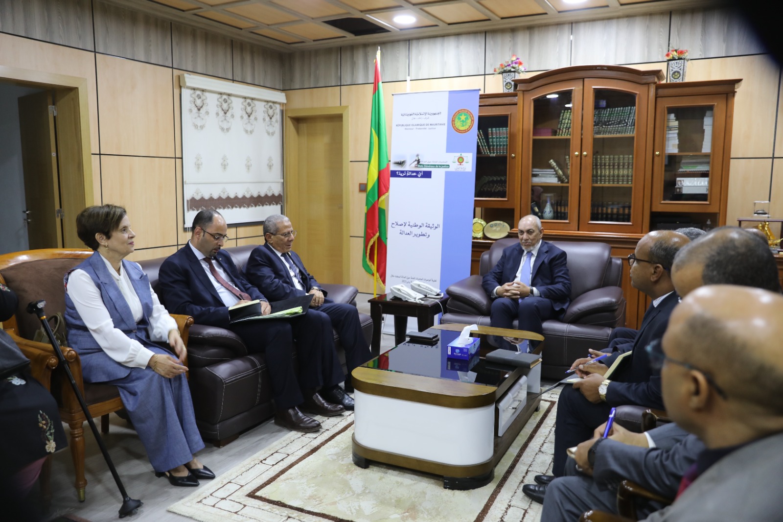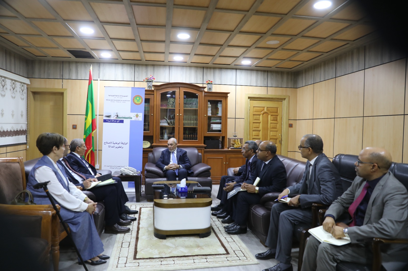 حضر اللقاء إلى جانب معالي الوزير كل من: الأمين العام للوزارة السيد: محمد أحمد عيده، والمستشار الكلف بالتعاون والمتابعة والتقييم السيد: أعمر القاسم، المستشار المكلف بالسياسة الجنائية والدعوى العمومية السيد: أحمد عبد الله المصطفى، ومدير التعاون والتعاون القضائي البيني السيد: الحسين الشيخ كبادي.