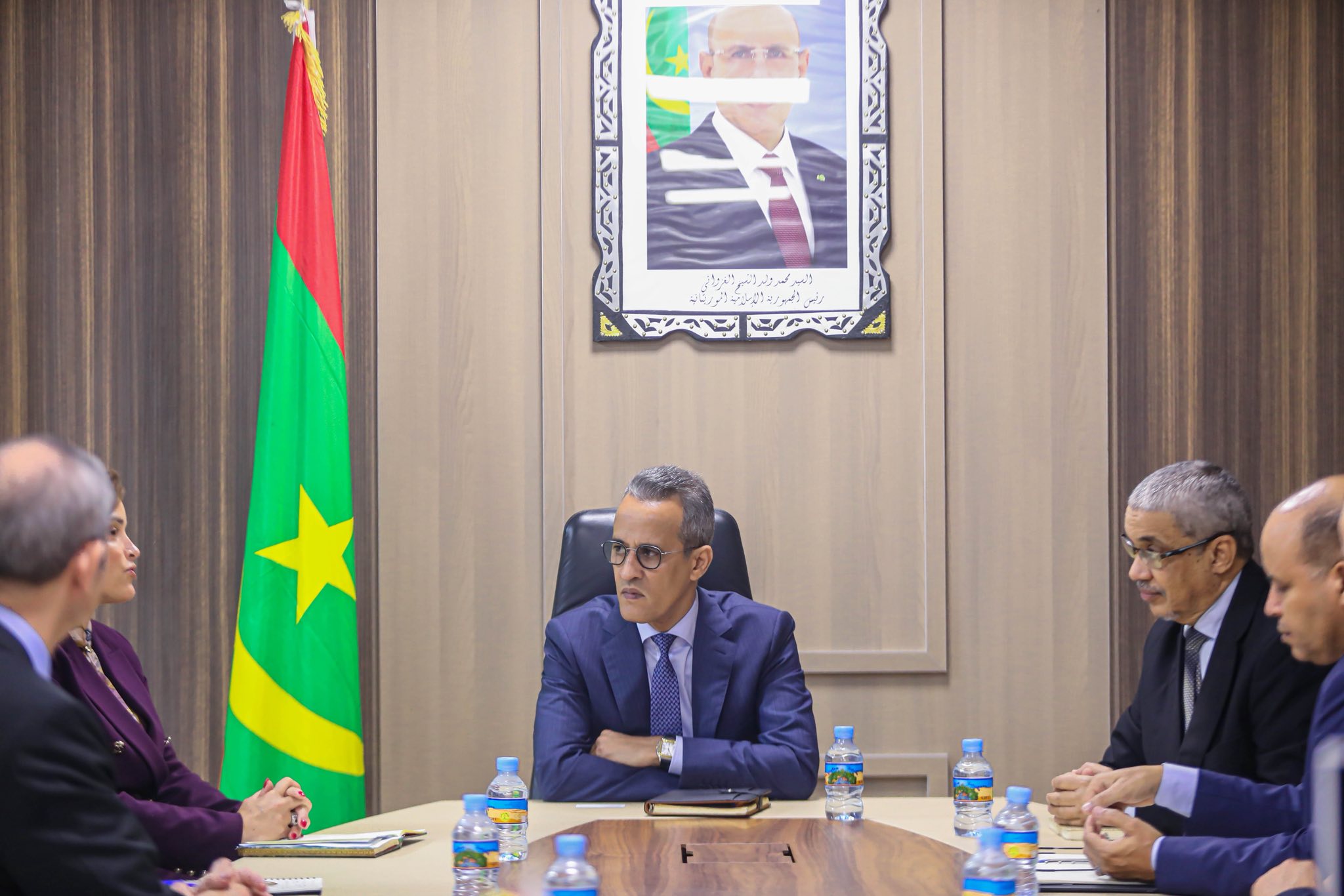 اللقاء جرى بحضور كل من الأمين العام للوزارة محمد محمود حمادي، والمدير العام للعقارات والتسجيل بيده ولد اسغير، ومدير السجل العقاري محمد سيدي عالي.