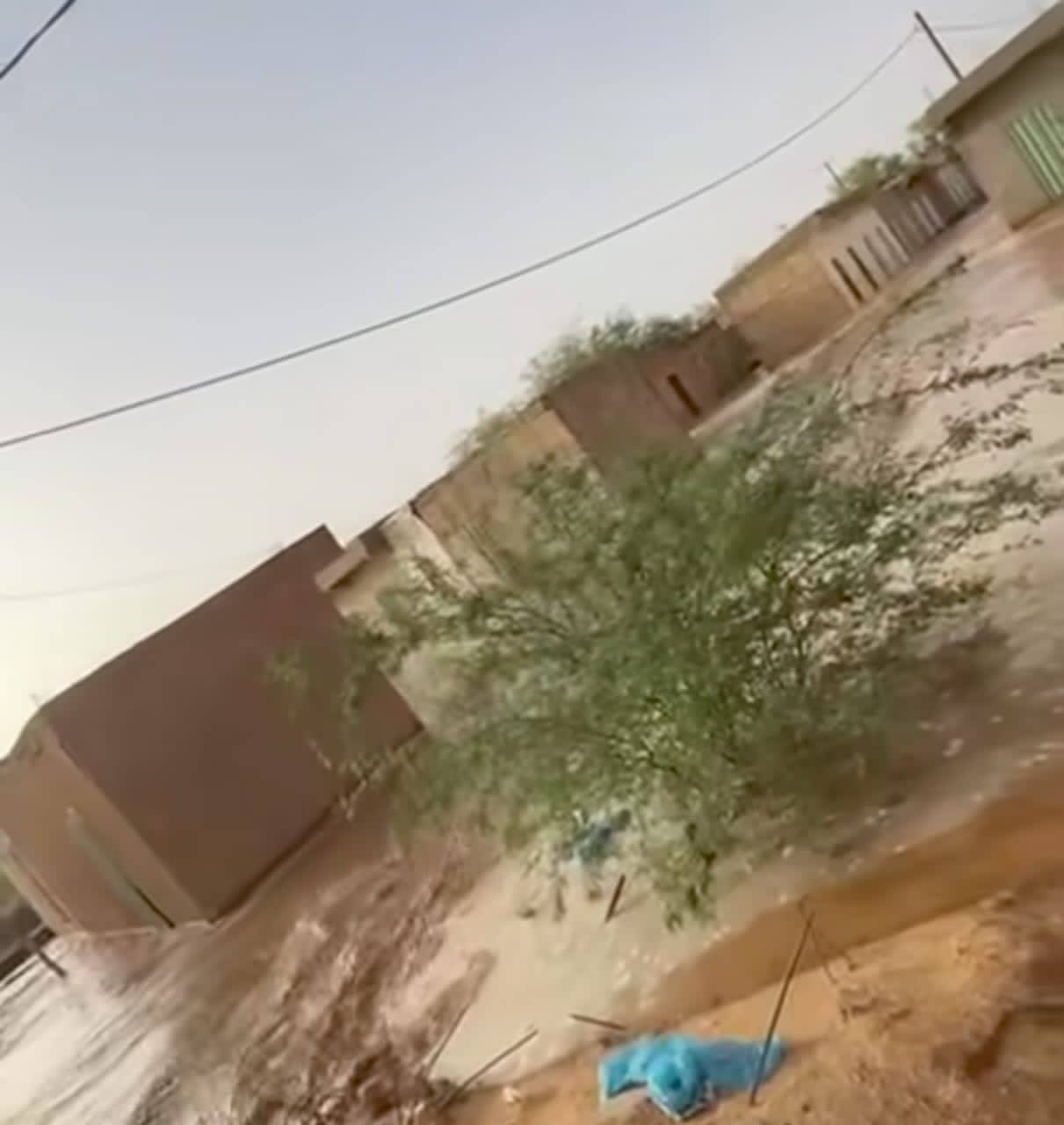 ووفق صور متداولة فقد غمرت السيول عدداً من المساكن في والمباني الإدارية، بينها مفتشية التعليم الأساسي والمستشفى قيد الإنشاء في المدينة.