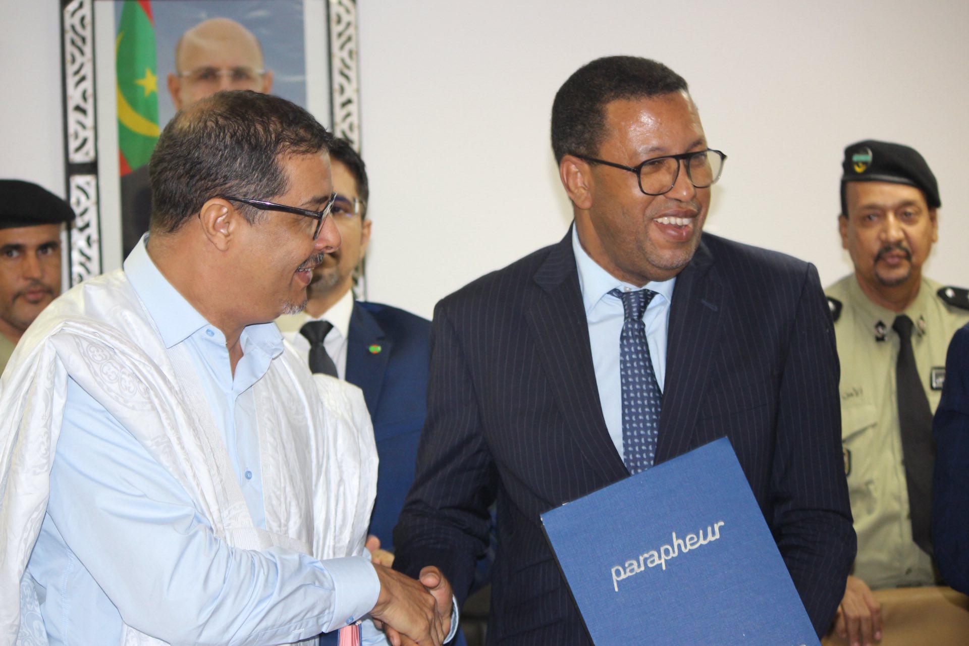 وفي ختام الحفل، وقّع معالي الوزير والوفد المرافق له الاتفاقيات مع رؤساء المجالس الجهوية، ثم قاموا بجولة تفقدية لميناء نواكشوط المستقل للاطلاع على الآليات الزراعية، حيث استمعوا إلى شروح مفصلة من الفنيين المختصين حول مواصفات هذه المعدات وملحقاتها.