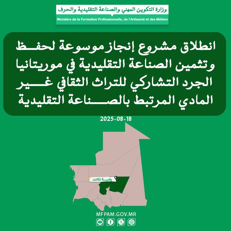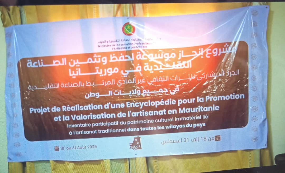 انطلقت اليوم الاثنين بمدينة تجكجة فعاليات مشروع إنجاز موسوعة وطنية لحفظ وتثمين الصناعة التقليدية في موريتانيا، بإشراف بعثة من وزارة التكوين المهني والصناعة التقليدية والحرف.