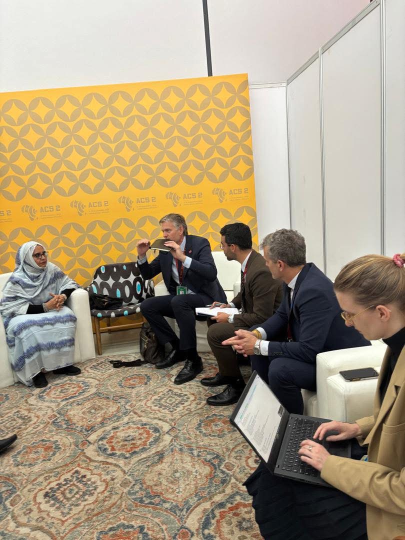 أجرت وزيرة البيئة والتنمية المستدامة، مسعودة بحام محمد لغظف، يوم الثلاثاء 9 سبتمبر 2025 في أديس أبابا، سلسلة لقاءات مع مسؤولين أفارقة ودوليين لمناقشة التعاون في مجالات المناخ والبيئة، شملت الرصد البيئي، التكيف مع التغير المناخي، حماية البيئة، فرص العمل الأخضر، ونقل التكنولوجيا، بحضور أعضاء الوفد المرافق والمستشار الثاني بسفارة موريتاني.