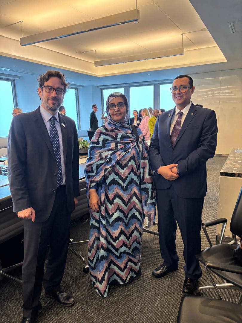 عقدت صباح اليوم الخميس في نيويورك وزيرة البيئة والتنمية المستدامة، السيدة مسعودة بحام محمد لغظف اجتاماعا على هامش أعمال الطاولة المستديرة لقاءات ثنائية مع كل من سيدي ولد التاه، رئيس البنك الإفريقي للتنمية، وإنغريد هوفن، المديرة العامة للوكالة الألمانية للتعاون الدولي (GIZ).