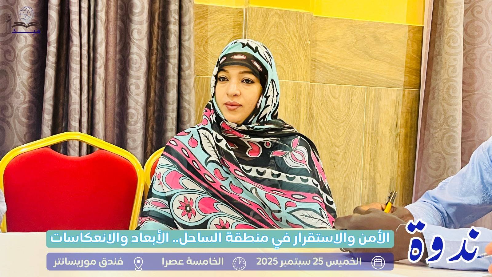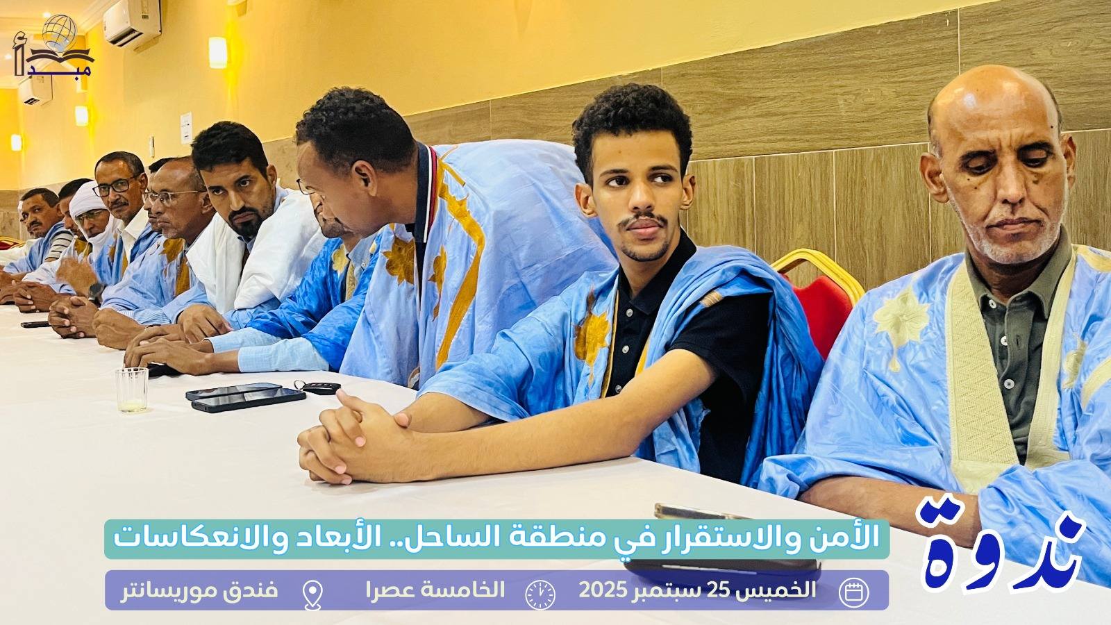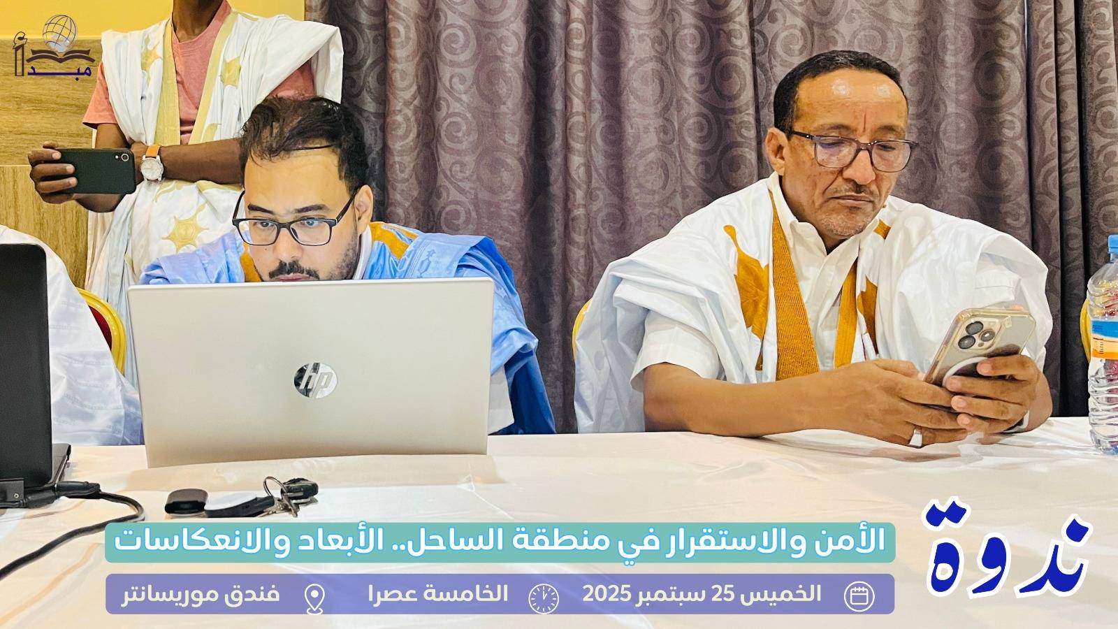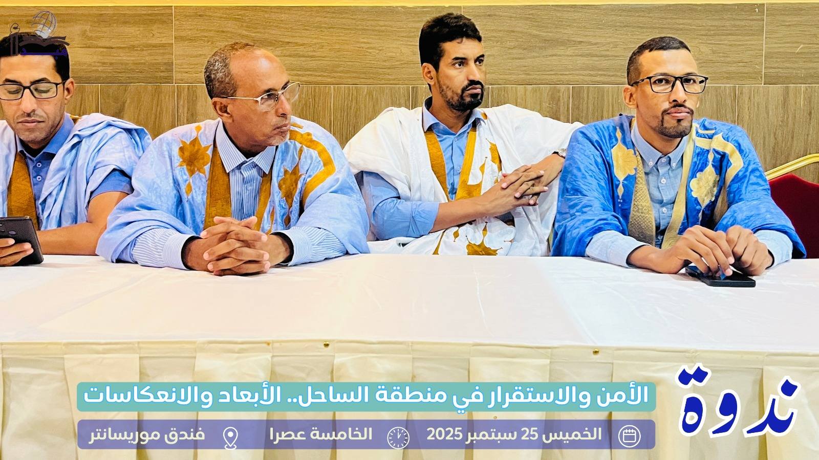 نظم المركز الموريتاني للبحوث والدراسات الإنسانية (مبدأ) مساء الخميس 25 سبتمبر 2025، ندوة دولية بعنوان “الأمن والاستقرار في منطقة الساحل.. الأبعاد والانعكاسات”، وذلك بفندق موريصانتر بنواكشوط.