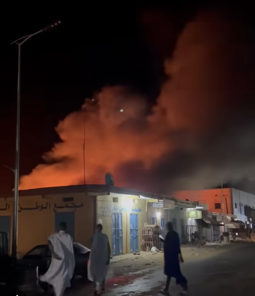 تداول نشطاء على مواقع التواصل الاجتماعي صورا قالوا إنها لحريق هائل اندلع الليلة في السوق المركزي في مدينة لعيون عاصمة ولاية الحوض الغربي