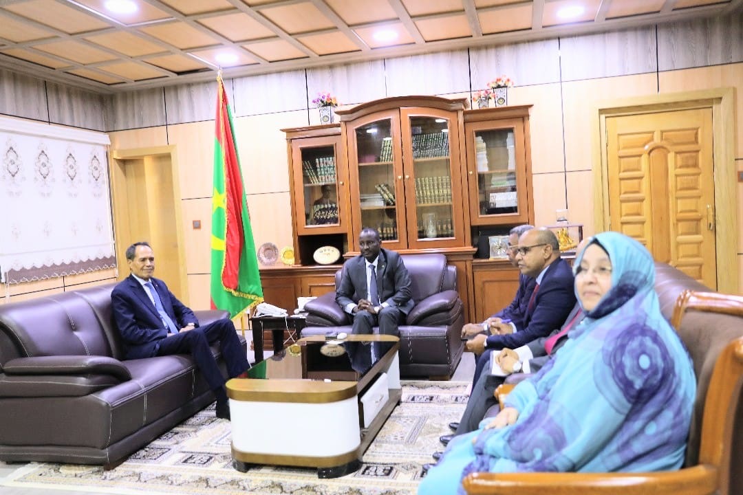وحضر اللقاء الأمين العام لوزارة العدل، محمد أحمد عيده، والمستشار المكلف بالتعاون والمتابعة، أعمر القاسم، والمستشارة المكلفة بالاتصال والنفاذ للعدالة، منت أحميد بنت التكرور، ومدير التعاون والتعاون القضائي البيني، الحسين الشيخ كبادي.